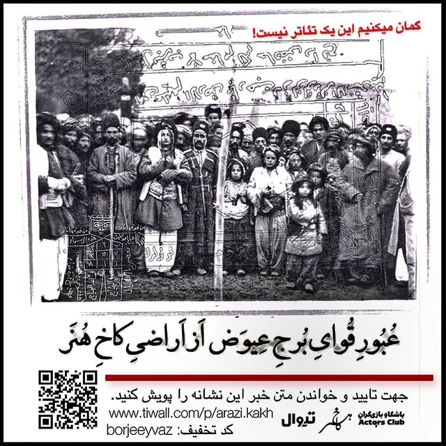نمایش «عبور قوای برج عیوض از اراضی کاخ هنر» از ١٧ آذرماه ساعت ٢٠ با مدت زمان ۶٠ دقیقه در کاخ هنر به نشانی خیابان رازی، نبش کوچه زندوکیل، پلاک ۵۰ به صحنه میرود و بلیت آن از طریق سایت تیوال قابل خریداری است.