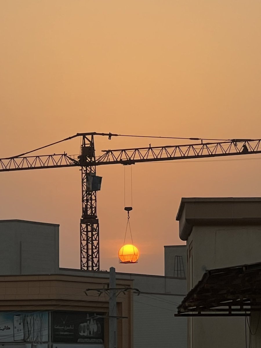 تصویری جالب از یک عکاس در فضای مجازی منتشر شده که در آن همزمانی کار یک جرثقیل با غروب خورشید توجهات را به خود جلب کرده است. / چندثانیه