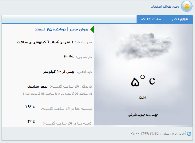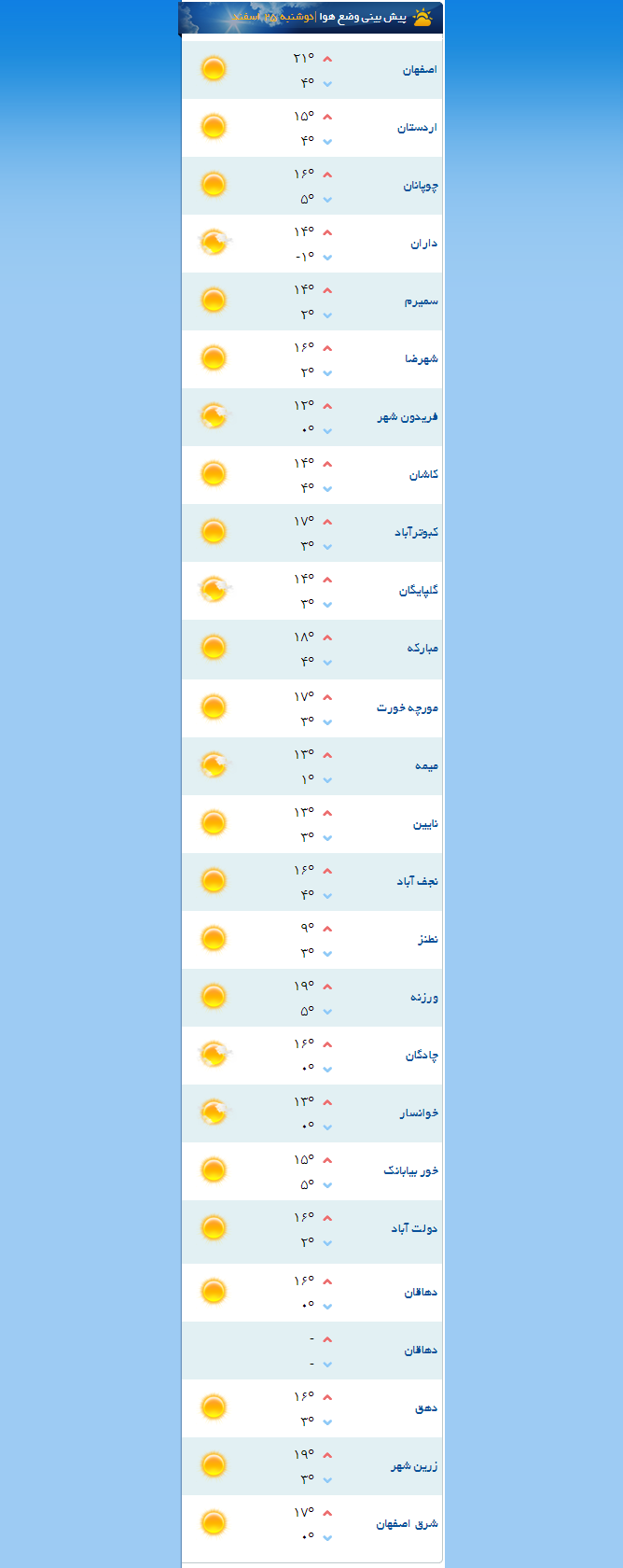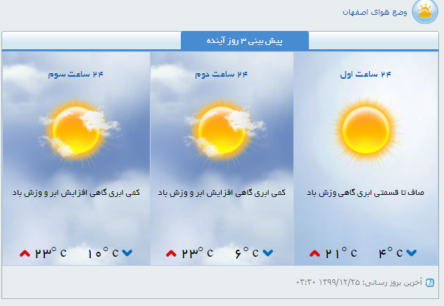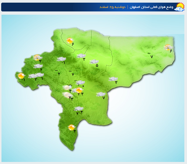 اصفهان- ایرنا- اداره کل هواشناسی اصفهان روز دوشنبه برای آخر هفته جاری این استان افزایش ابر، وزش باد شدید همراه با بارشهای پراکنده پیشبینی کرد.