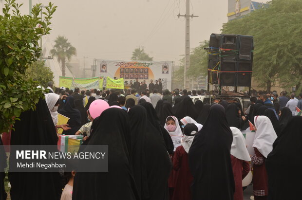 بر اساس اعلام سامانه پایش کیفی هوای کشور، در ساعت ۹:۰۰ امروز (۱۷ دی ماه) شاخص کیفیت هوا بر اساس اندازهگیری ذرات معلق با اندازه ۲.۵ میکرون در ایستگاه شرکت ملی حفاری در اهواز ۱۵۵، ایستگاه اداره کل حفاظت محیط زیست خوزستان در اهواز ۱۵۳، سوسنگرد ۱۵۱، ایستگاه ماهشهر ۱۵۴، ایستگاه شادگان ۱۵۳، ایستگاه آبادان ۱۵۵ و ایستگاه خرمشهر ۱۶۶ میکروگرم بر مترمکعب بوده بنابراین هوای این شهرها در وضعیت «ناسالم» و «قرمز» بوده است.