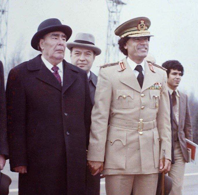 تصویری تاریخی از معمر قذافی رهبر لیبی و لئونید برژنف رهبر اتحاد جماهیر شوروی را ببینید. منبع: چندثانیه