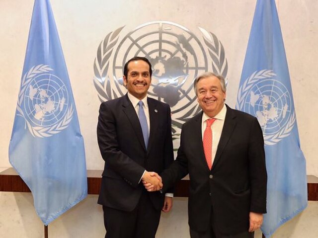 آل ثانی با گوترش درخصوص تسهیل در انتقال بدون مانع کمکها به غزه گفتگو کرد.