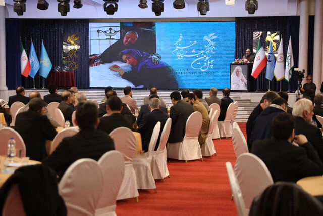دبیر جشنواره در ابتدای مراسم با اشاره به موسیقی فیلم مادر که در پس زمینه مراسم پخش میشد، از ارسلان کامکار آهنگساز فیلم مادر و رقیه چهره آزاد و فریماه فرجامی یاد کرد که در مفهوم وطن مادر و مادر وطن پوستر دیگری از جشنواره هستند.