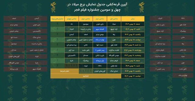 *در این مراسم تاکید شد این جدول نمایش برای فیلمها در برج میلاد و پردیس سینمایی ملت است.