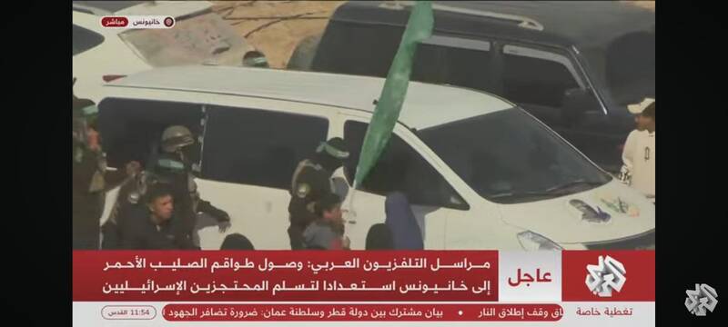 تصاویر میدانی حاکی از رسیدن دو اسیر دیگر صهیونیست به محل تبادل اسرا است. همزمان رزمندگان حماس به شکل گسترده ای در محل انجام تبادل حضور یافته و جمعیت زیادی از مردم فلسطین نیز در صحنه حاضر شده اند.