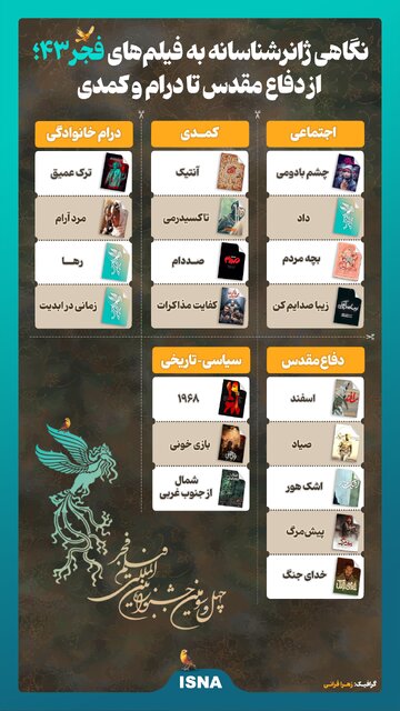 آثار راه یافته به رویداد ملی چهلوسومین دوره جشنواره فیلم فجر هر کدام دارای ویژگیهای متفاوتی هستند که میتوان از زاویههای مختلف به آنها نگریست. در اینفوگرافیک زیر اسامی فیلمهای راه یافته به این دور از جشنواره را مشاهده میکنید.