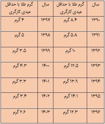 مقایسه ارزش عیدی سالانه کارگران بر اساس شاخص خرید طلا در ۱۴ سال گذشته را ببینید. منبع: باشگاه خبرنگاران جوان