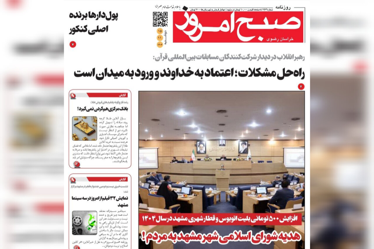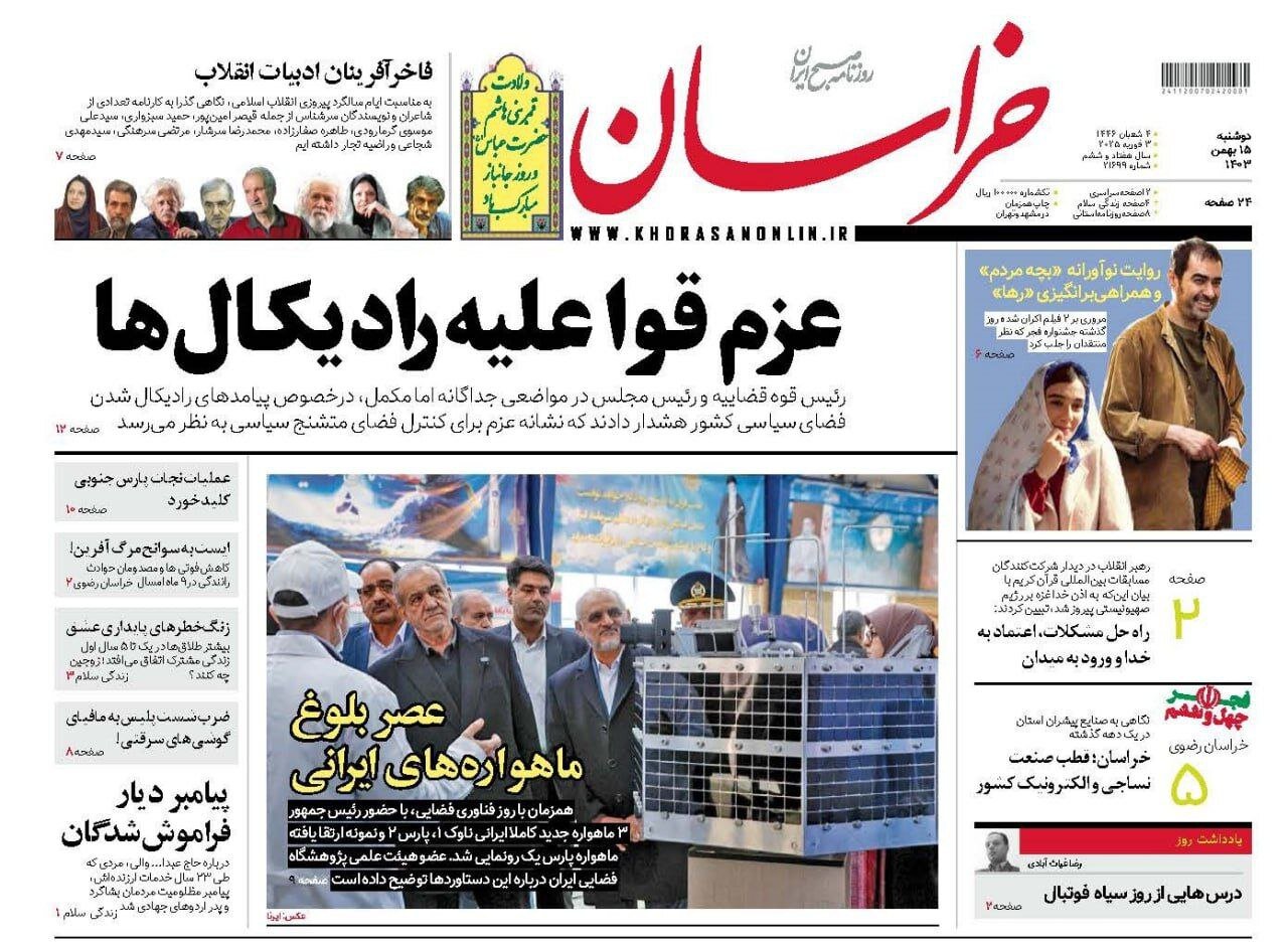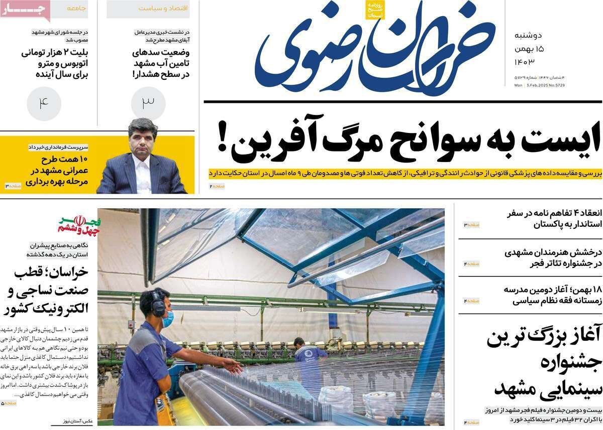 صفحه اول روزنامه های خراسان رضوی دوشنبه ۱۵ بهمن ۱۴۰۳