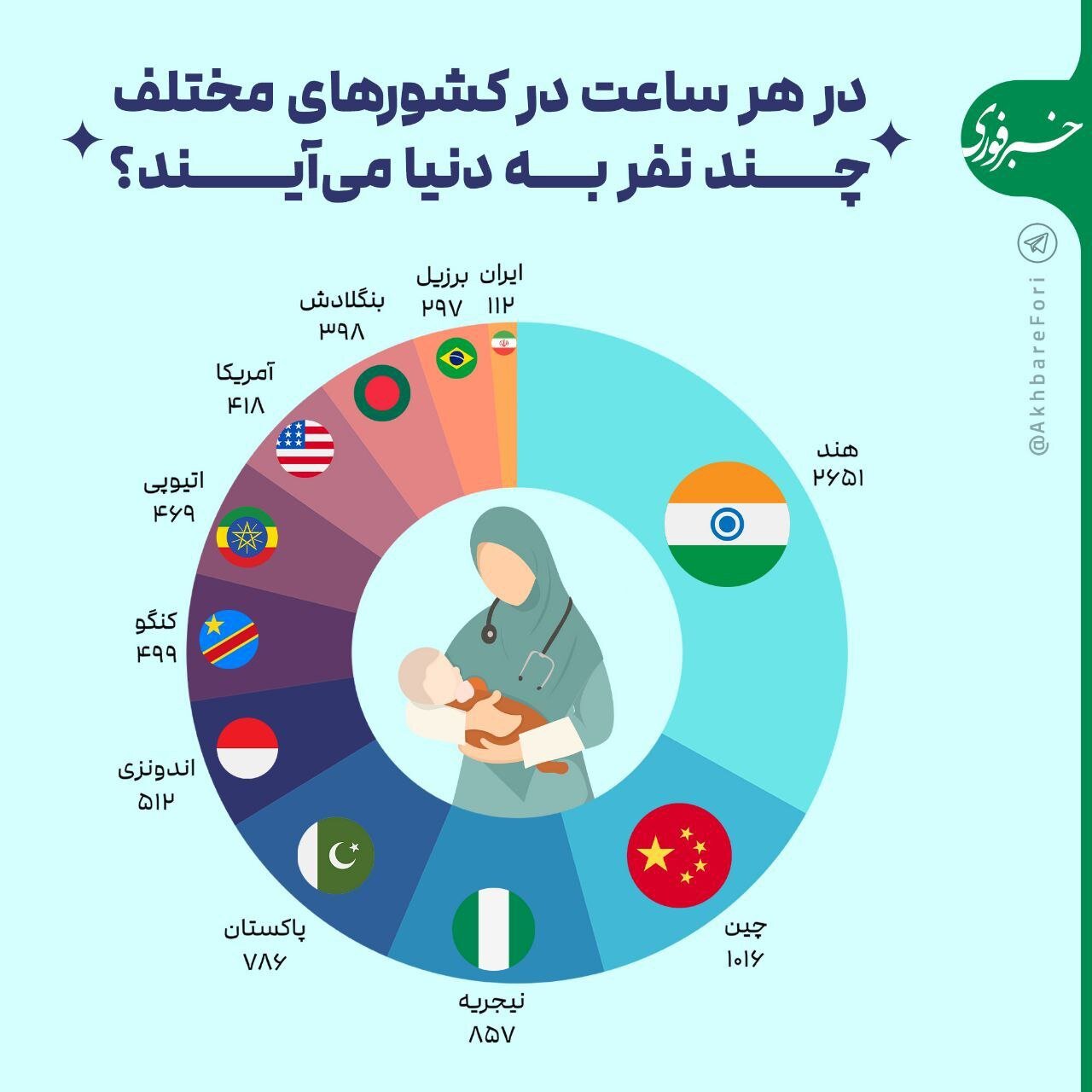 با به تصویر کشیدن تعداد تولد نوزادان به تفکیک کشورها نشان میدهد که کشورهای پرجمعیت جهان در رشد جمعیت جهانی چه سهمی دارند./خبرفوری