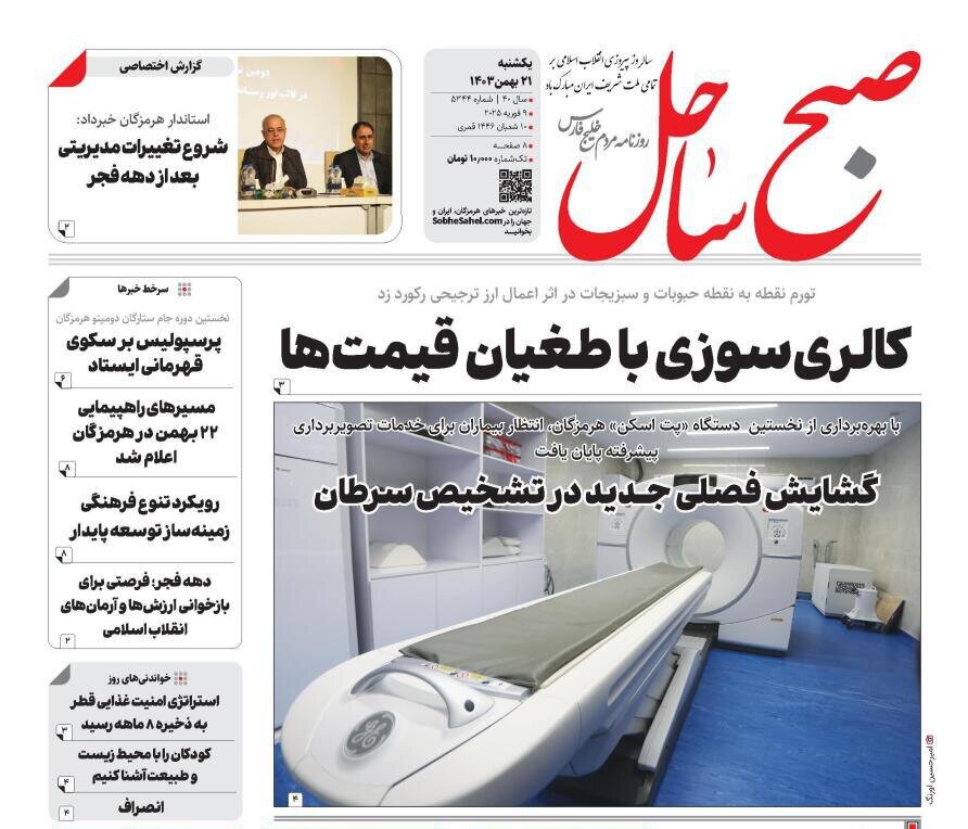 صفحه اول روزنامه‌های هرمزگان یکشنبه ۲۱ بهمن