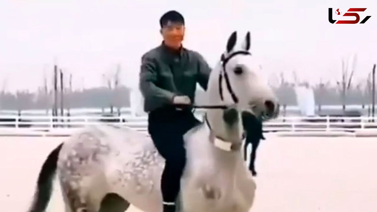 حرکت بی نظیر برای سوار شدن به اسب + فیلم و عکس