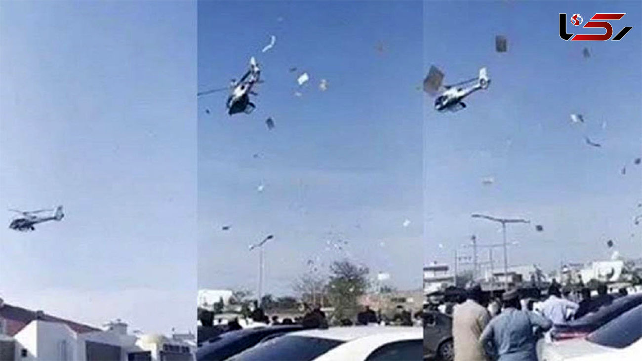 در ویدئویی که تبدیل به ویدئویی داغ شده مشاهده می‌شود که پس از برخاستن هلی کوپتر از زمین مقادیر زیادی اسکناس به همراه شاخه‌های گل رز برای مهمانان پرتاب می‌شود. بنا به گزارش ARY News این هلی کوپتر توسط برادر داماد برای انجام این برنامه اجرا شده بود. آخرین قیمت های بازار ایران را اینجا کلیک کنید.