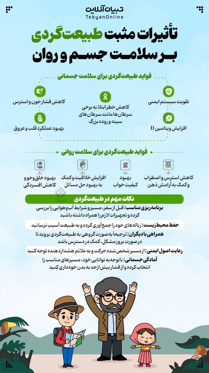طبیعتگردی و رفتن به دامن طبیعت با تجربیات لذتبخشی همراه است. کمی هوای تازه، گرمای آفتاب، خنکی آب و تماشای مناظری زیبا، لذتهای کوچک و نشاطآوری هستند که تجربهی آنها باعث میشود روحیهی بهتری داشته باشیم./تبینان آنلاین