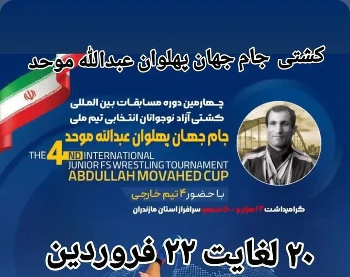 قربانعلی ولیزاده فرماندار شهرستان بابلسر نیز با اشاره به چهارمین دوره مسابقات کشتی جام بین المللی جهان پهلوان عبدالله موحد گفت: این رویداد بزرگ با حضور ۱۰ تیم داخلی، ۱ تیم از شهرستان و ۴ تیم از کشورهای گرجستان، هند، ارمنستان و تاجیکستان در روزهای ۲۰،۲۱و ۲۲ فروردینماه سال جاری در سالن ورزشی شهیدان نوبخت بابلسر برگزار میشود