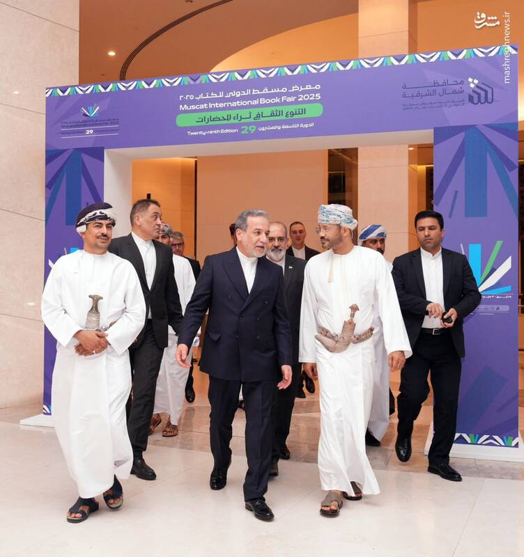 به گزارش مشرق، سید عباس عراقچی وزیر امور خارجه همراه با سید بدر البوسعیدی وزیر امور خارجه و عبدالله بن ناصر الحراصی وزیر اطلاع رسانی عمان در نمایشگاه بینالمللی کتاب عمان ۲۰۲۵ و رونمایی از نسخه عربی کتاب «قدرت مذاکره» حضور پیدا کردند.