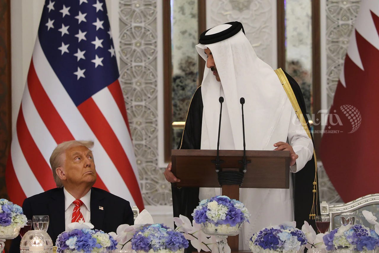رئیسجمهور دونالد ترامپ و امیر قطر، تمیم بن حمد آل ثانی چند روز پیش در یک ضیافت رسمی در کاخ لوسیل شرکت کردند. در جریان این دیدار «وین مکنامی» عکاس خبرگزاری گتی، لحظه نگاه خاص ترامپ به امیر قطر را شکار کرد. / گتی ایمیج - خبرآنلاین