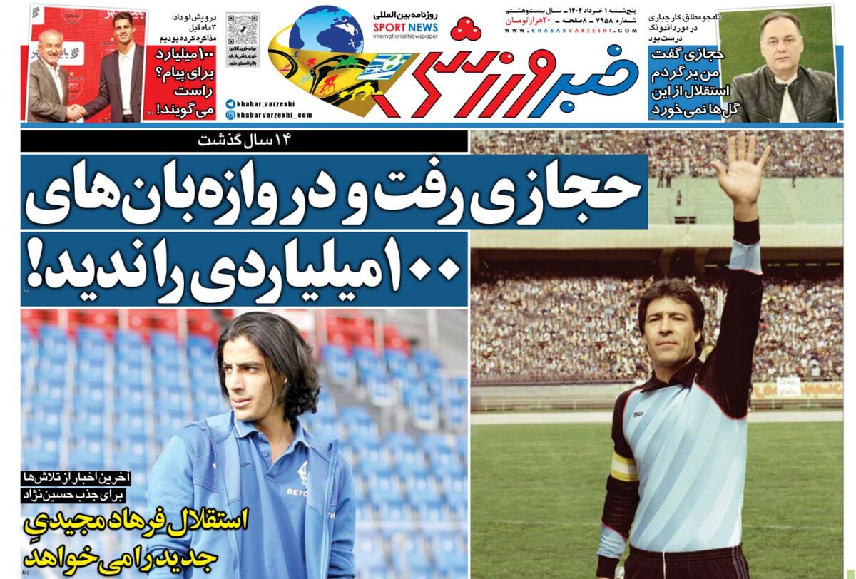 به همین بهانه خبرورزشی تیتر و عکس اصلی صفحه اول روزنامه فردا (پنجشنبه اول خرداد ماه) را به ناصر حجازی اختصاص داده است . تیتر حجازی رفت و دروازه بان های 100 میلیاردی را ندید اشاره ای به مبلغ قرارداد علیرضا بیرانوند، پیام نیازمند و ... است اما خبرورزشی تیتری هم درباره نقل و انتقالات استقلال دارد که جذاب است.