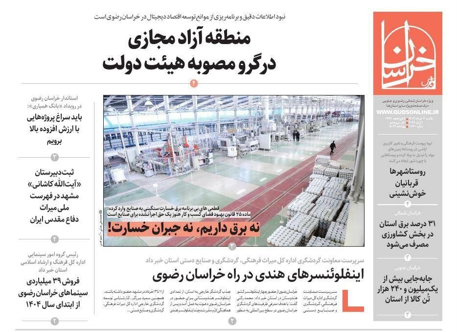 صفحه اول روزنامه های خراسان رضوی ۱۱ خرداد ۱۴۰۴