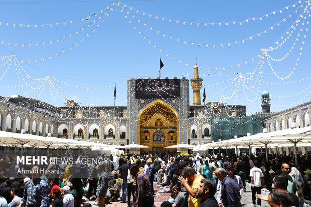 مشهد - حرم حضرت رضا (ع) در روز شهادت امام محمد باقر (ع) با حزن و اندوهی عمیق آراسته شده است. زائران با قلبهای شکسته و چشمهای اشکبار در صحن و سرای رضوی به عزاداری می پردازند.