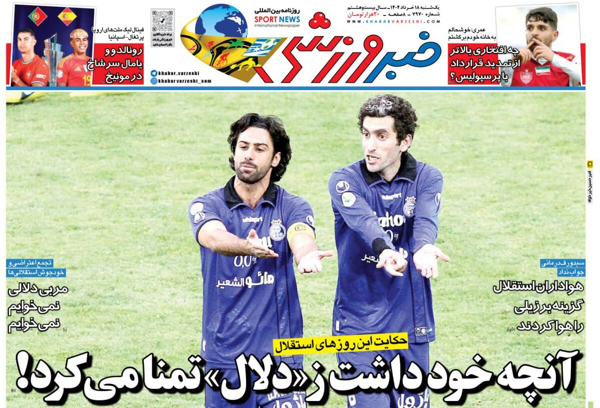 این تیتر جذاب، تیتر یک خبرورزشی فردا است. تازه ترین شماره روزنامه خبرورزشی، فردا یکشنبه هجدهم خرداد ماه در سراسر کشور توزیع می شود.