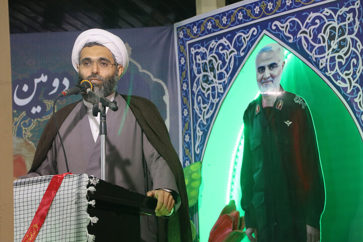حجتالاسلام حاجبی سپس به پیام تاریخی غدیر اشاره کرد و گفت: غدیر پیام اطاعت محض از محور امامت و ولایت علیبنابیطالب (ع) است. پیام غدیر پیام امید و استقامت است؛ امید به نصرت الهی و پیروزی بر کفار و ظالمان.
