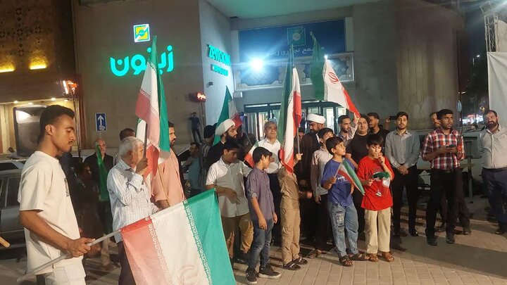 بندرعباس- مردم بندرعباس به محض اطلاع از آغاز عملیات موشکی علیه آمریکای جنایتکار خوشحالی خود را نشان داده و شعار الله اکبر سر دادند.