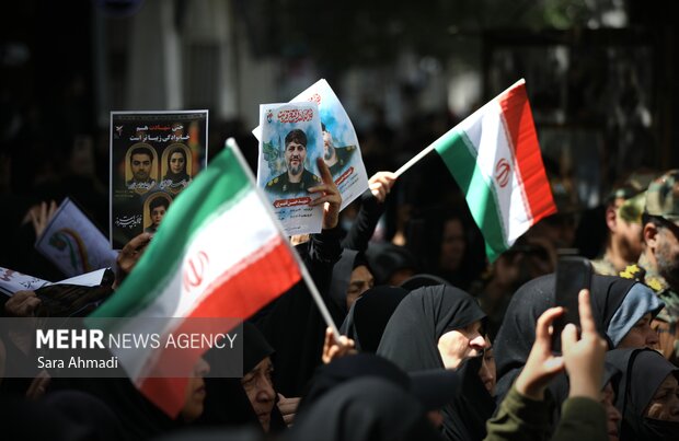 مشهد - در مراسم تشییع شهدای حمله رژیم صهیونیستی مردم ولایتمدار و زائران امام رضا(ع) با حضوری حماسی، عشق و ارادت بیدریغ خود را به شهدا و آرمانهای انقلاب به نمایش گذاشتند.