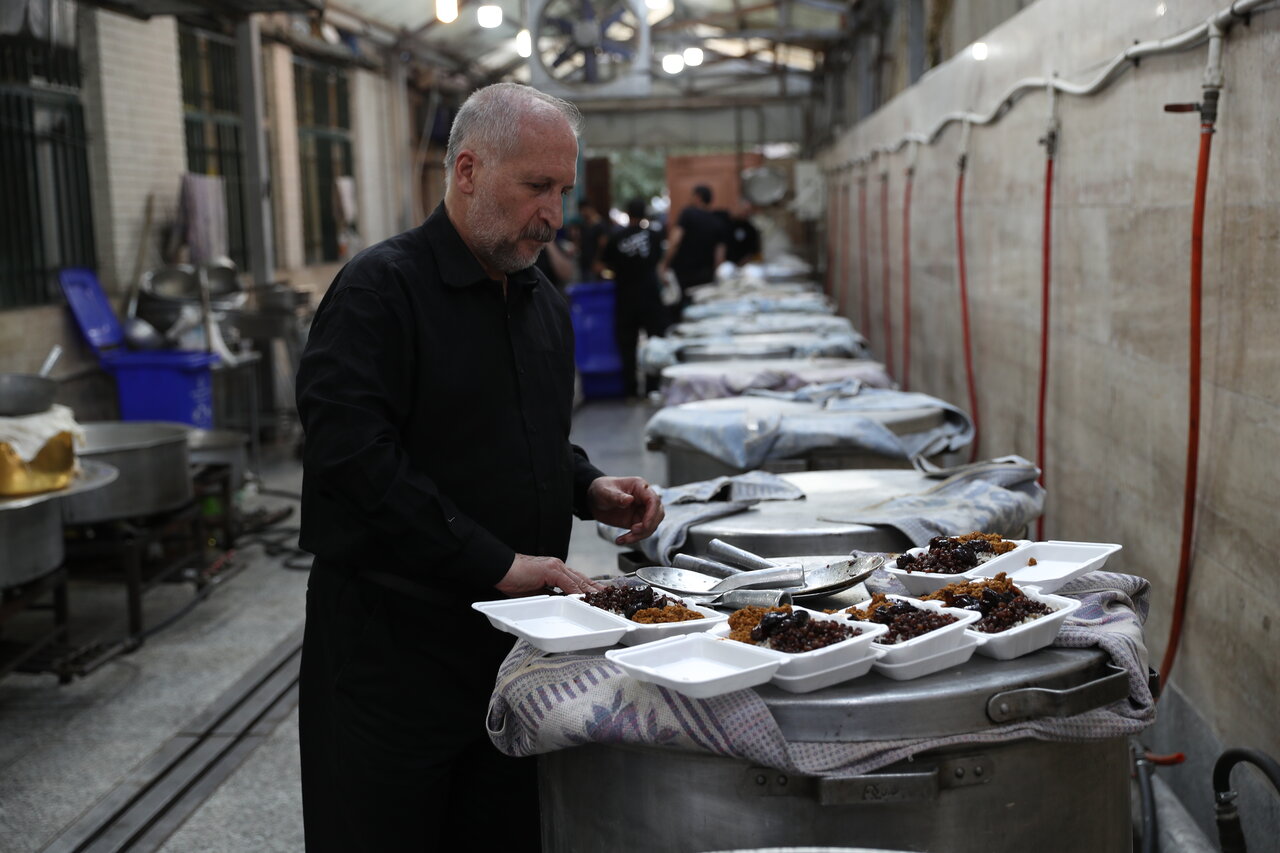 همشهری آنلاین_فاطمه عسگری نیا: مشتی از برنج برمی دارد و کم و کیف پخت را اول با دست اندازه می گیرد بعد هم چند دانه ای برنج در دهان می گذارد و زیر لب زمزمه می کند " یادم نمی رود که همه عزتم تویی/من پای سفره تو شدم محترم حسین/لطفی که کرده ای به من مادرم نکرد/ای مهربانتر از پدر و مادرم حسین " با اشاره حاج رضا، بچه های هیات دست به کار می شوند یکی خرماهای سرخ شده را از روغن بیرو می آورد یکی کشمش های تفت داده شده را آماده کناری می گذارد و مسئول گوشت های چرخ کرده هم با کفگیر چوبی بلند دائم مشغول هم زدن و آماده کردن آنها هستند. حاج رضا محمدی، پسر ارشد کربلایی صادق محمدی بنیانگذار هیات مسلمیه تهران است که راه و رسم آشپزی در هیات را از پدر به ارث برده است.