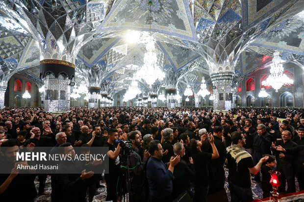 مشهد - مراسم اجتماع عزاداران حسینی با مرثیهسرایی و ذکر مصیبت توسط ابراهیم احمدی در رواق امام خمینی(ره) حرم مطهر امام رضا(ع) همزمان با تاسوعا برگزار شد.