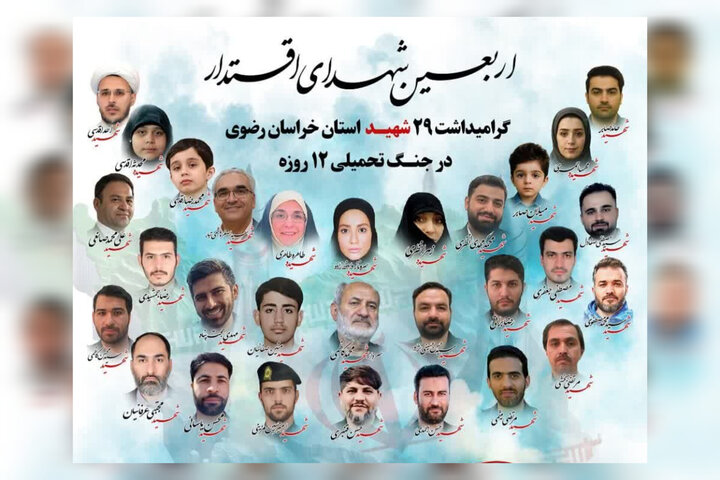 به گزارش خبرنگار مهر، استان خراسان رضوی در جنگ تحمیلی ۱۲ روزه، ۲۹ شهید تقدیم نظام مقدس جمهوری اسلامی ایران کرده است.