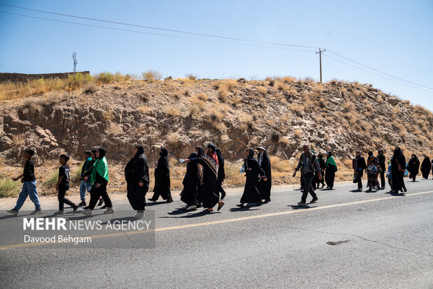 خواف - کاروان زائران پیاده امام رضا (ع) از محور خواف برای شرکت در مراسم شهادت امام رضا (ع) در حال حرکت به سمت مشهد مقدس است.
