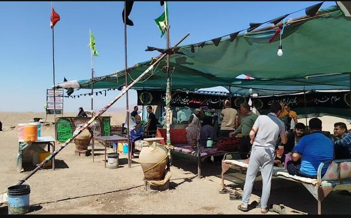 بردسکن - ارادتمندان به ساحت مقدس علی ابن موسی الرضا (ع) در منطقه عشایری بردسکن، در دروازه ورودی به خراسان رضوی با برپایی موکب از زائران آن امام همام در ایام پایانی صفر پذیرایی میکند.