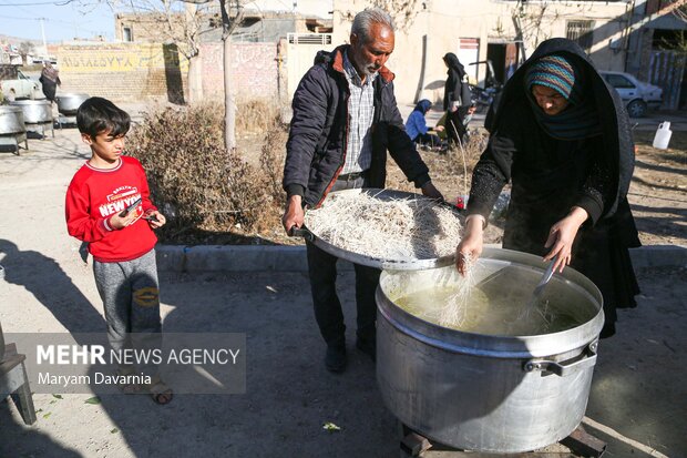 ری- همزمان با سالروز شهادت امام رضا(ع)، اهالی روستای مجیدآباد کهریزک در ری با برپایی مراسم پخت و توزیع آش نذری، ارادت خود را به ساحت امام هشتم نشان دادند.