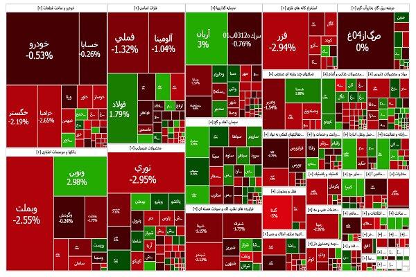 ملی صنایع مس ایران (فملی) با ۲۷۷۷ واحد، صنایع پتروشیمی خلیج فارس (فارس) و پتروشیمی نوری (نوری) هر کدام با ۱۹۸۳ واحد و بانک ملت (وبملت) با ۱۹۶۶ واحد بیشترین تأثیر منفی را بر شاخص کل گذاشتند. پالایش نفت بندرعباس (شبندر)، پالایش نفت اصفهان (شپنا) و سرمایهگذاری غدیر (وغدیر) دیگر نمادهای اثرگذار منفی روز بودند.