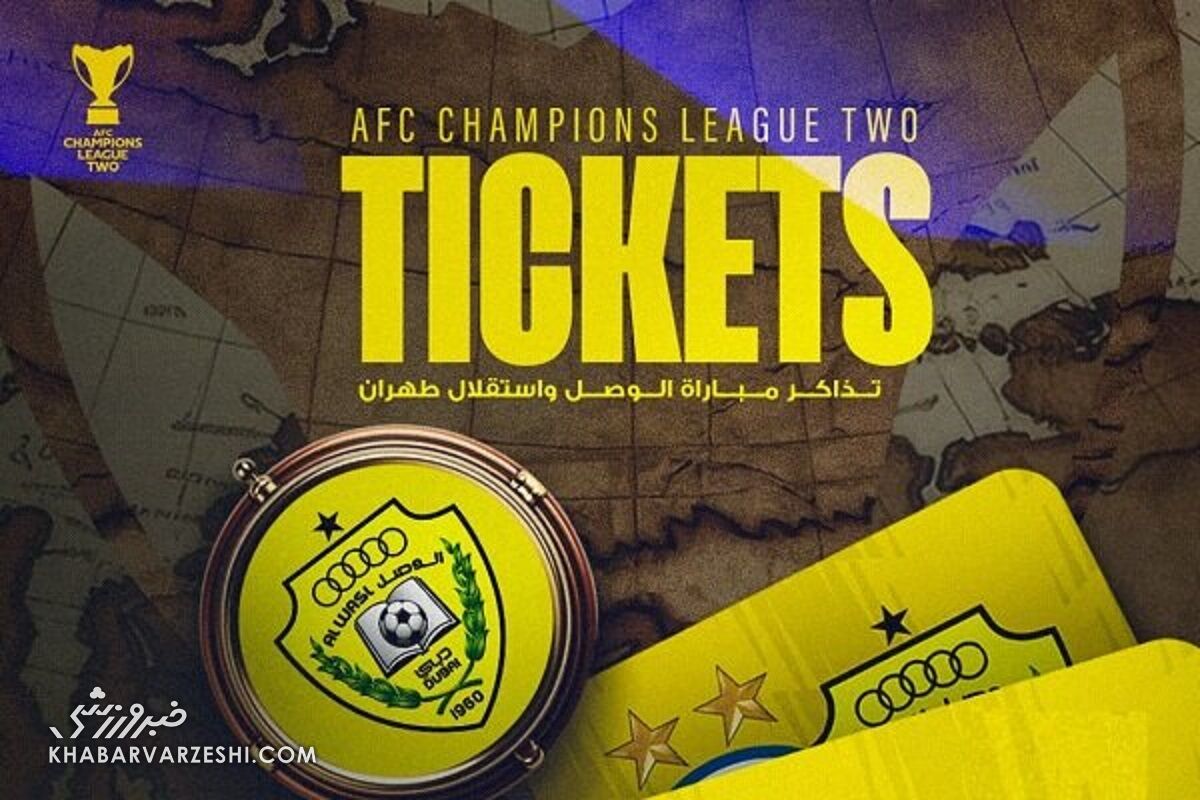 تیمهای فوتبال استقلال ایران و الوصل امارات در هفته اول لیگ قهرمانان آسیا ۲ به مصاف یکدیگر میروند و قیمت بلیت این دیدار به رقمهای نجومی رسیده است.