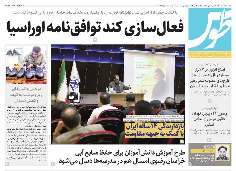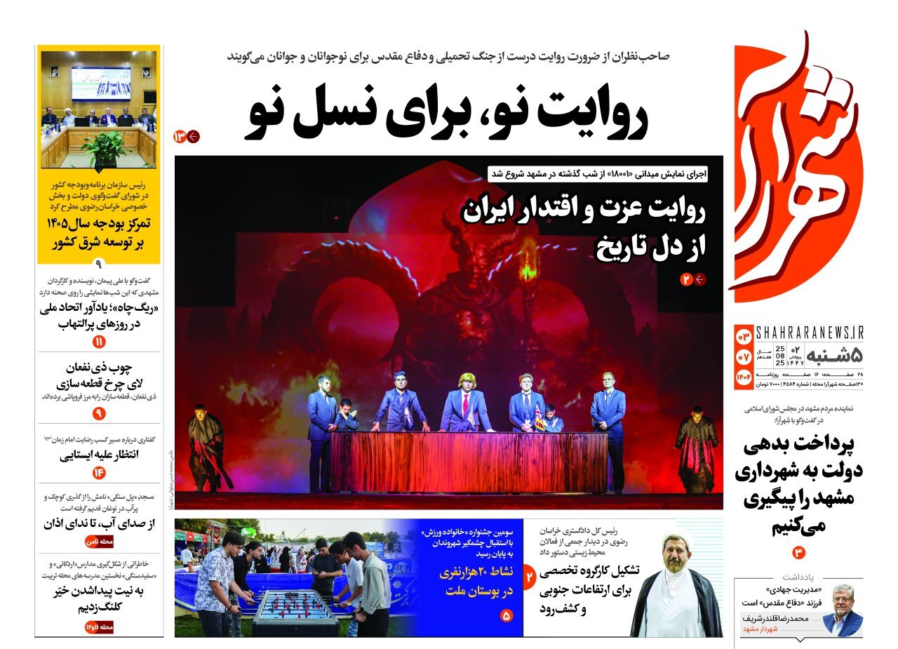روزنامه های خراسان رضوی پنجشنبه ۳ مهرماه ۱۴۰۴