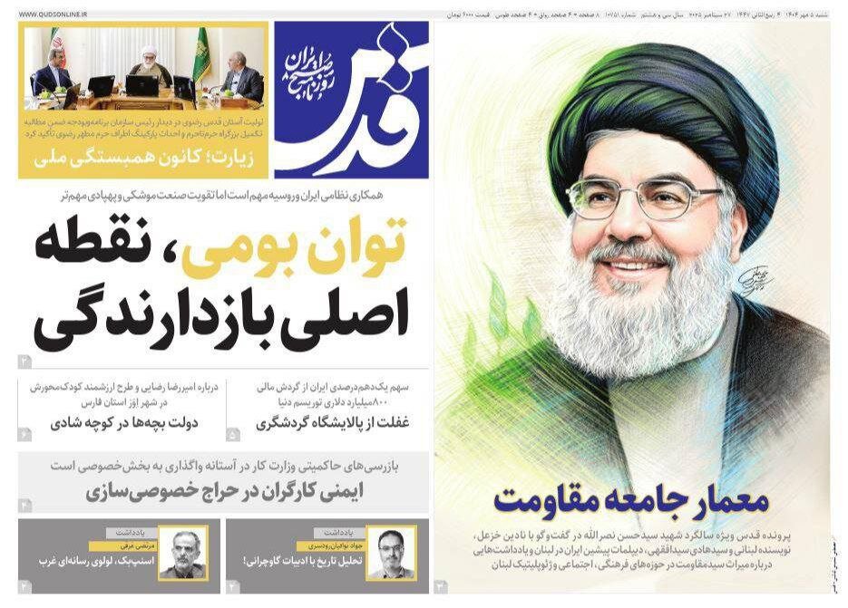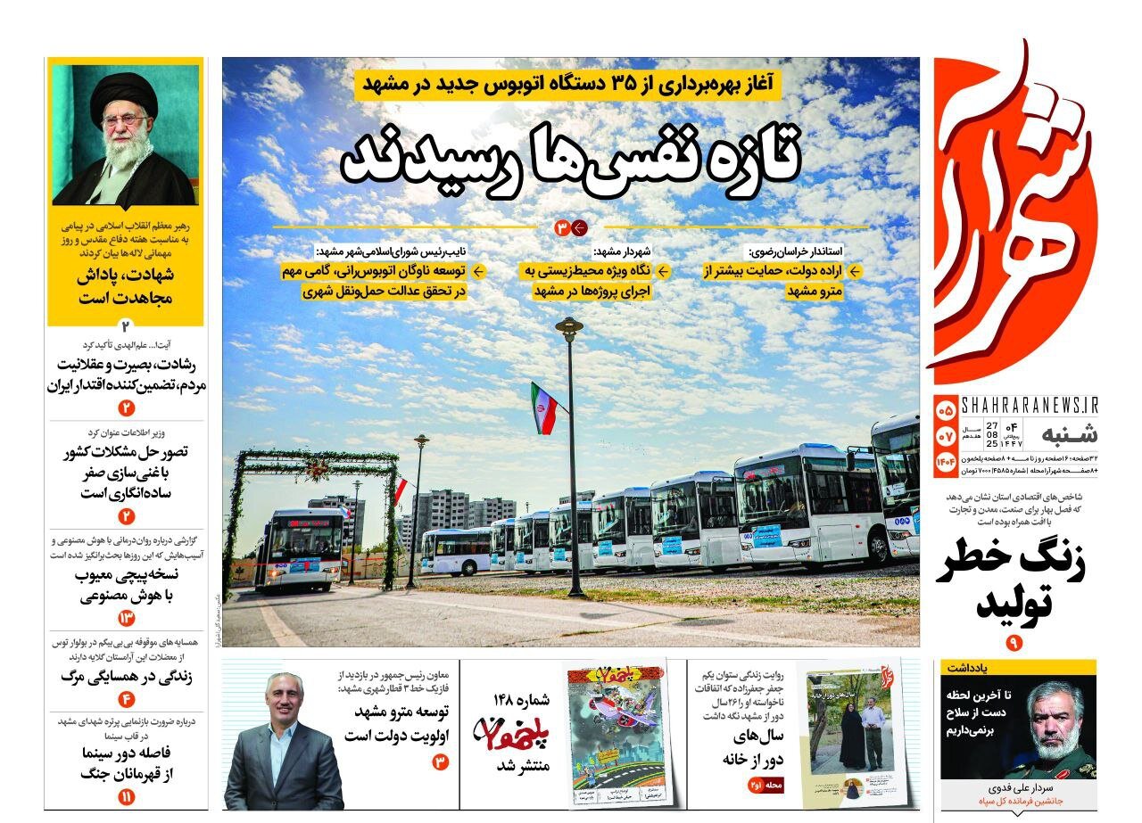 صفحه اول روزنامه های خراسان رضوی شنبه ۵ مهر