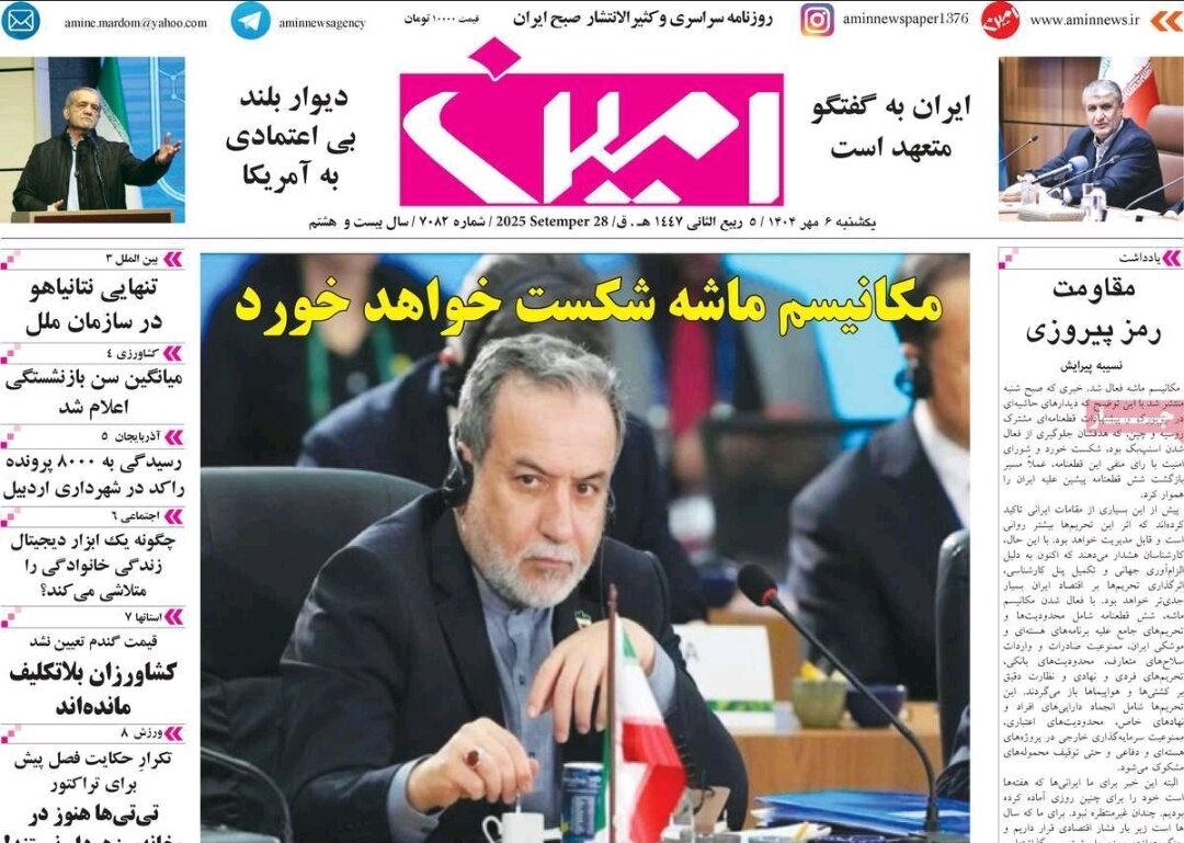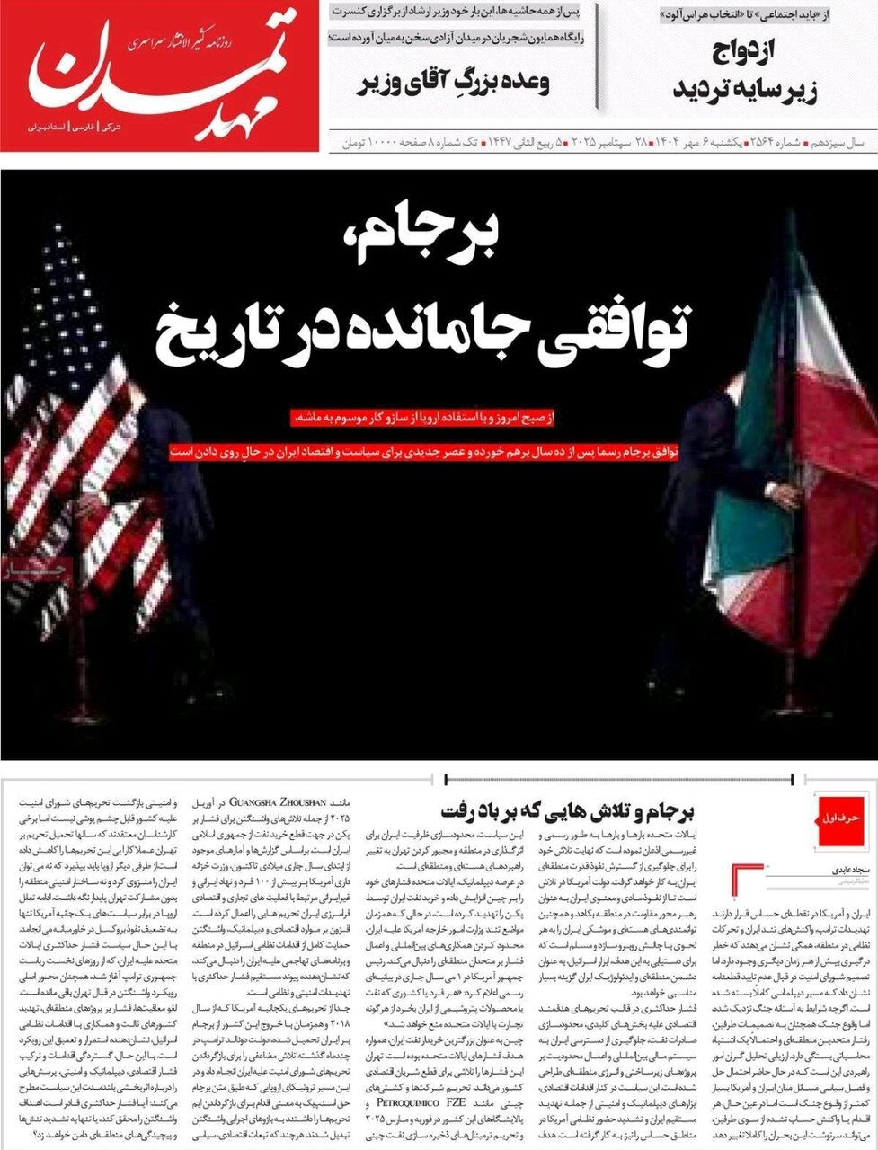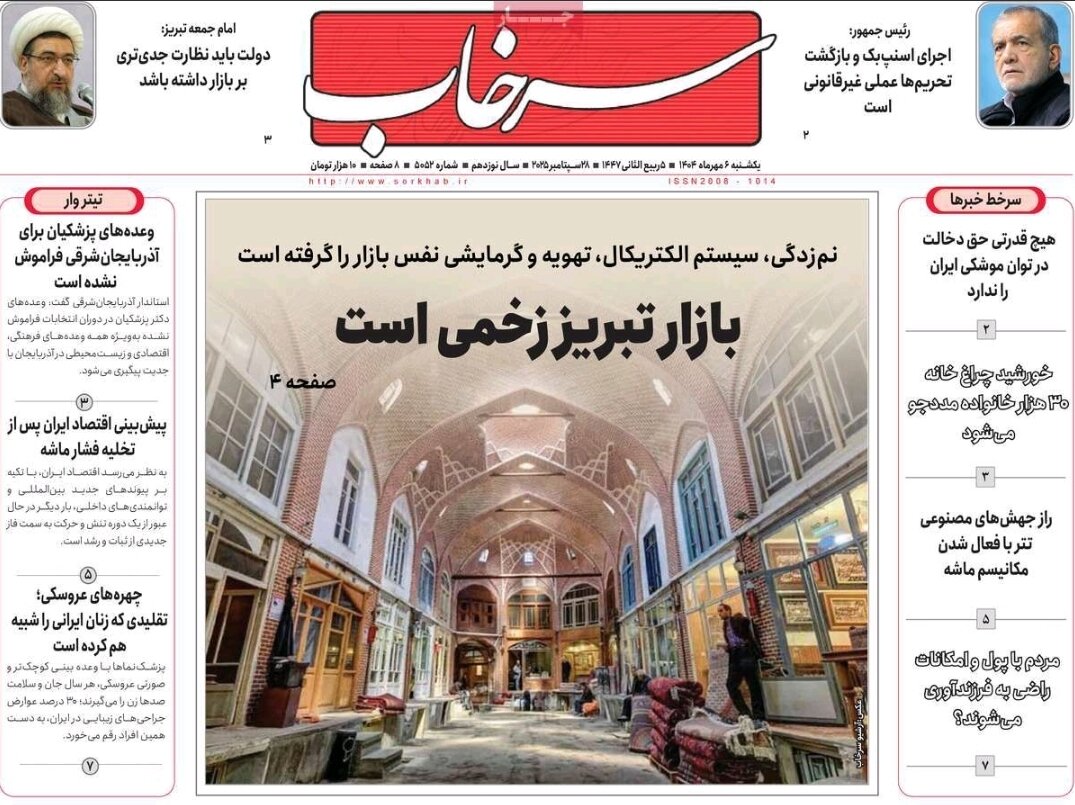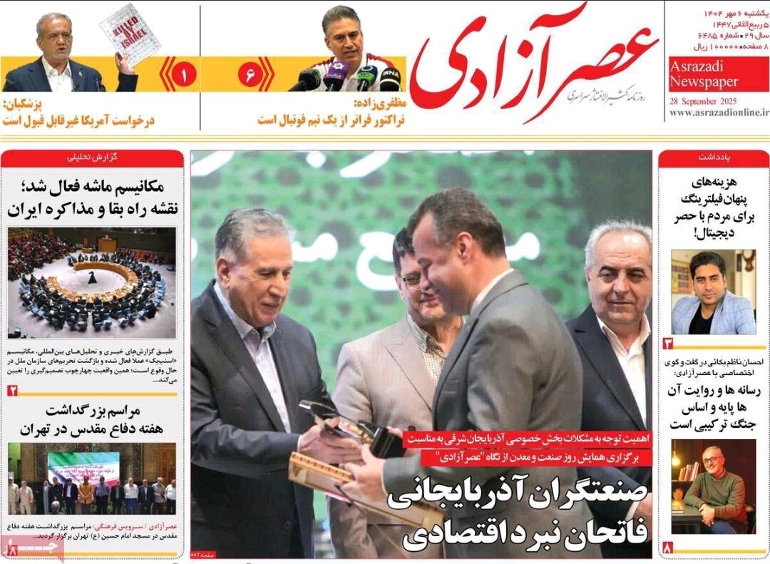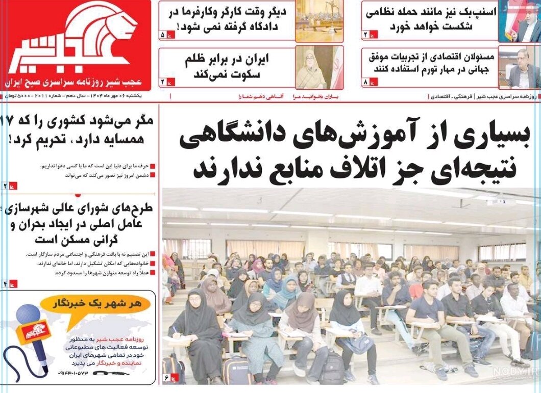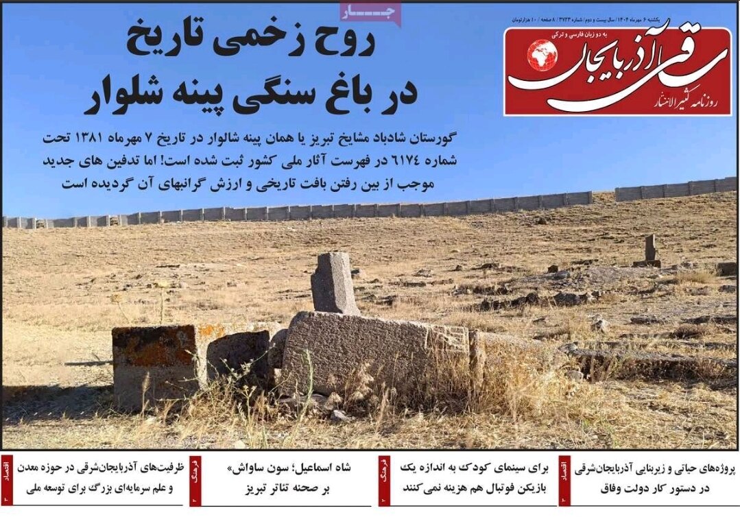صفحه نخست روزنامه‌های آذربایجان شرقی ۶ مهر ۱۴۰۴