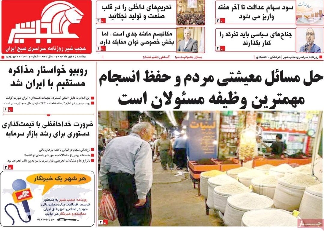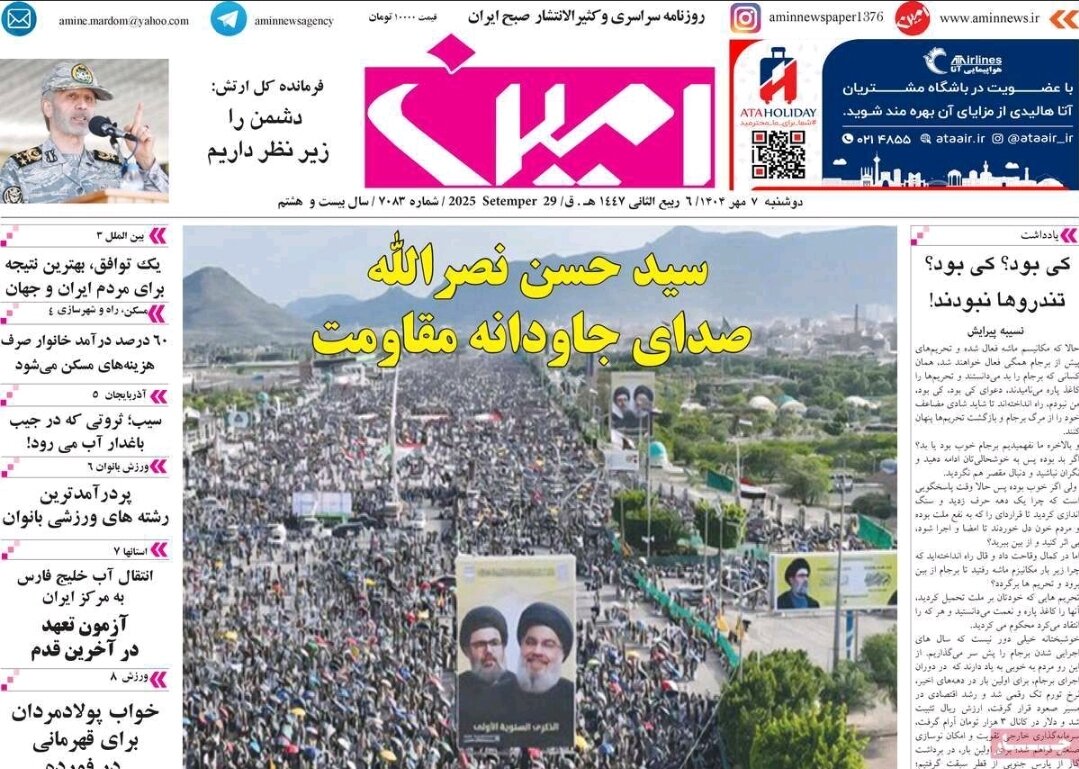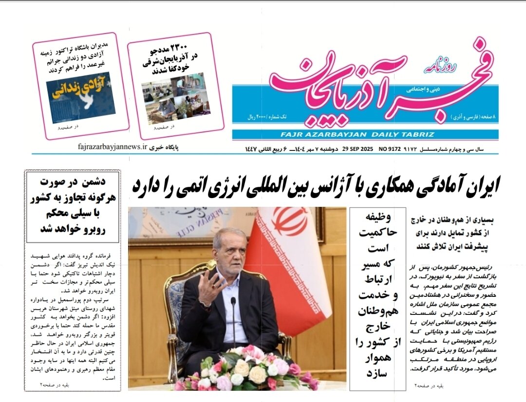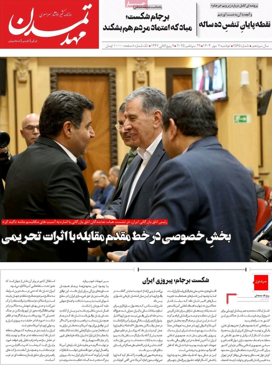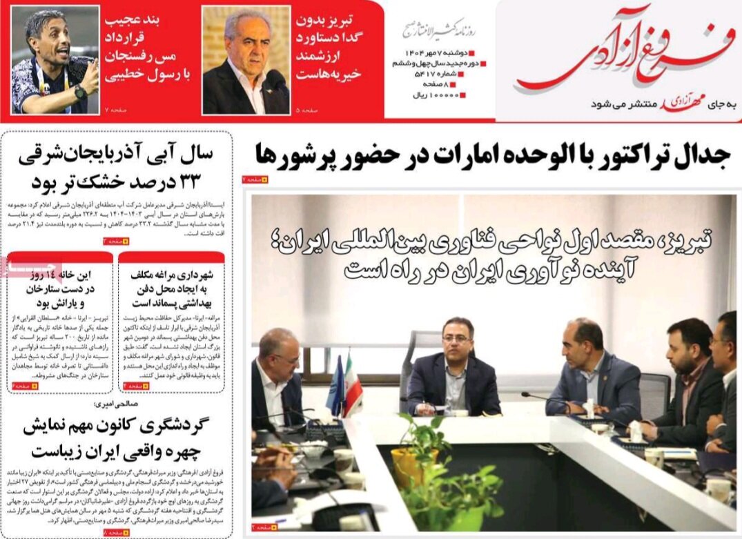 صفحه نخست روزنامه‌های آذربایجان شرقی ۷ مهر ۱۴۰۴