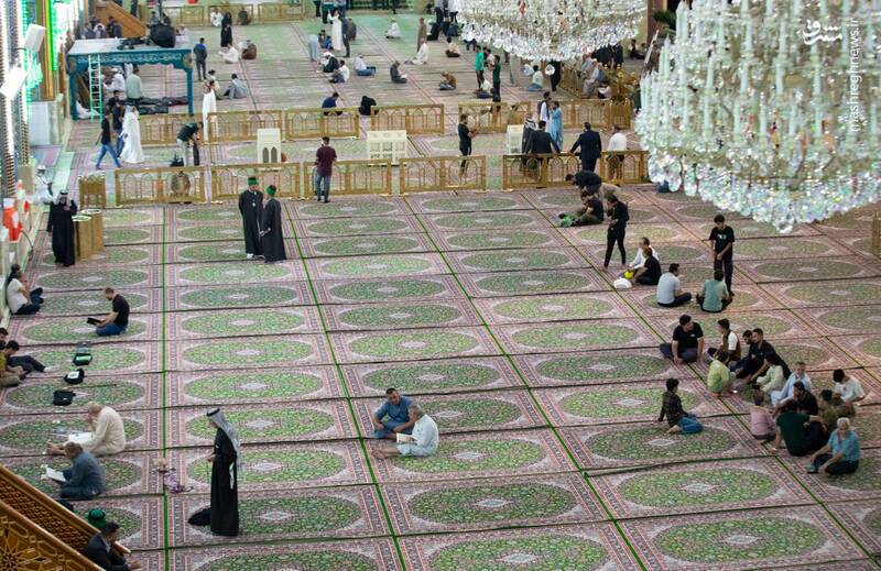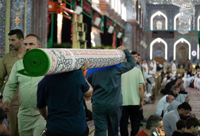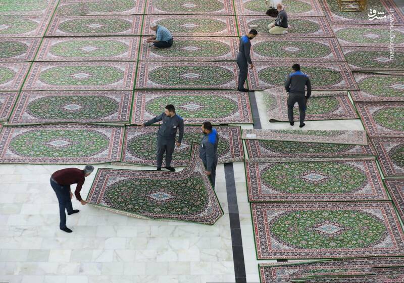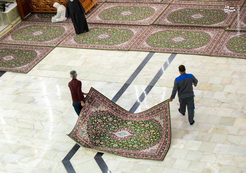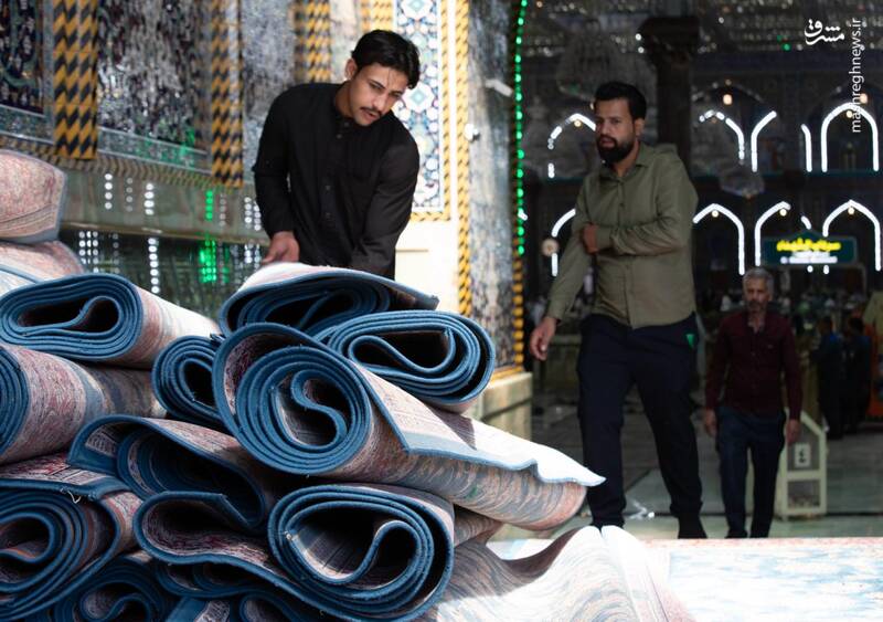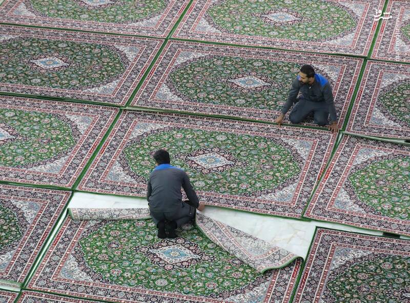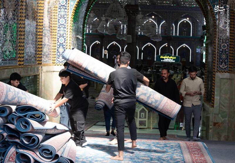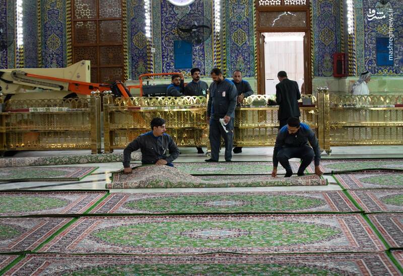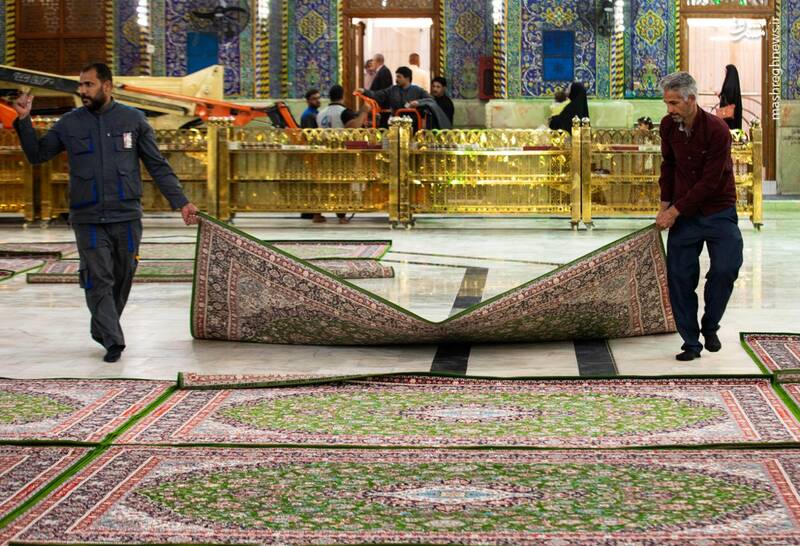 فرشهای حرم مطهر اباعبدالله الحسین علیهالسلام توسط خادمان تعویض شد.