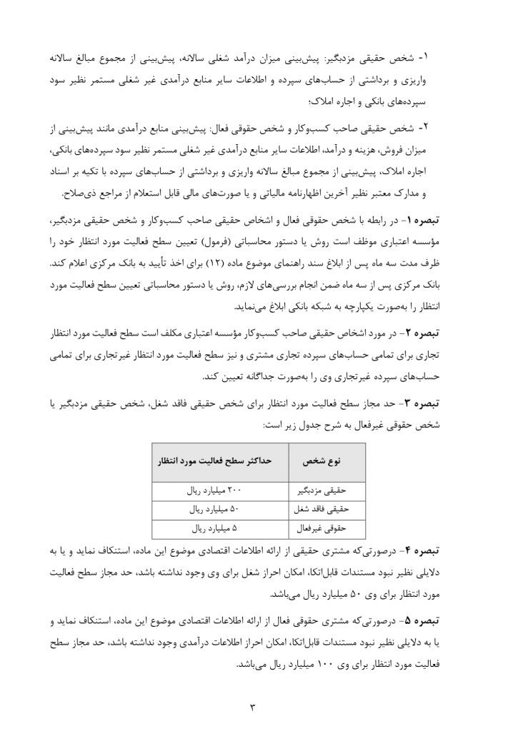 بانک مرکزی با ارسال ابلاغیهای، بانکها را ملزم کرد تا برای فعالیت مشتریان شبکه بانکی سطح فعالیت تعیین کنند.