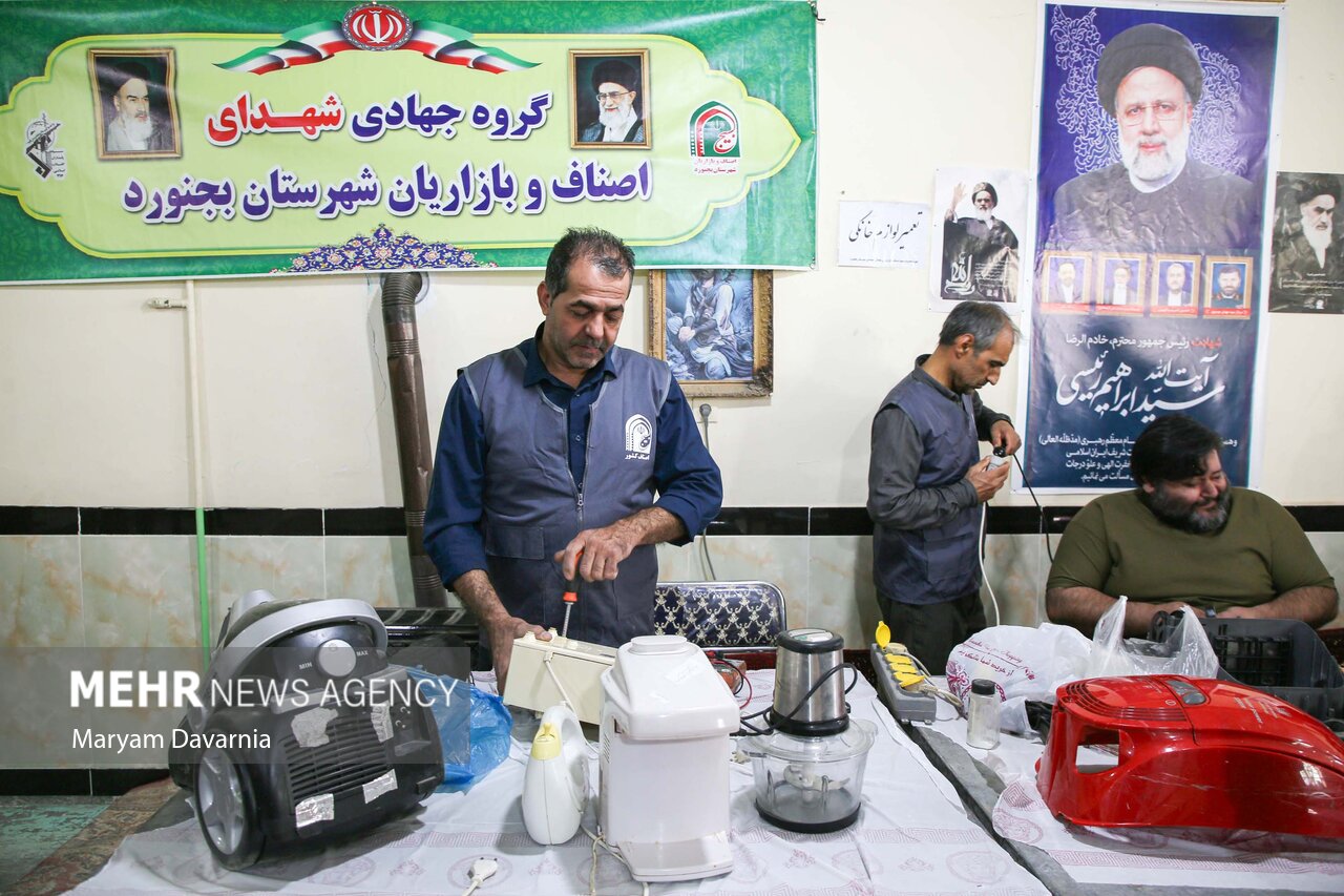 اصناف و بازاریان بجنورد در قالب کاروان جهادی بسیج برای خدمت رسانی به مردم حاشیه شهر بجنورد، حاضر شدند. تعمیرکاران لوازم خانگی، آرایشگران و … از جمله اصنافی بودند که در این طرح حضور یافتند.