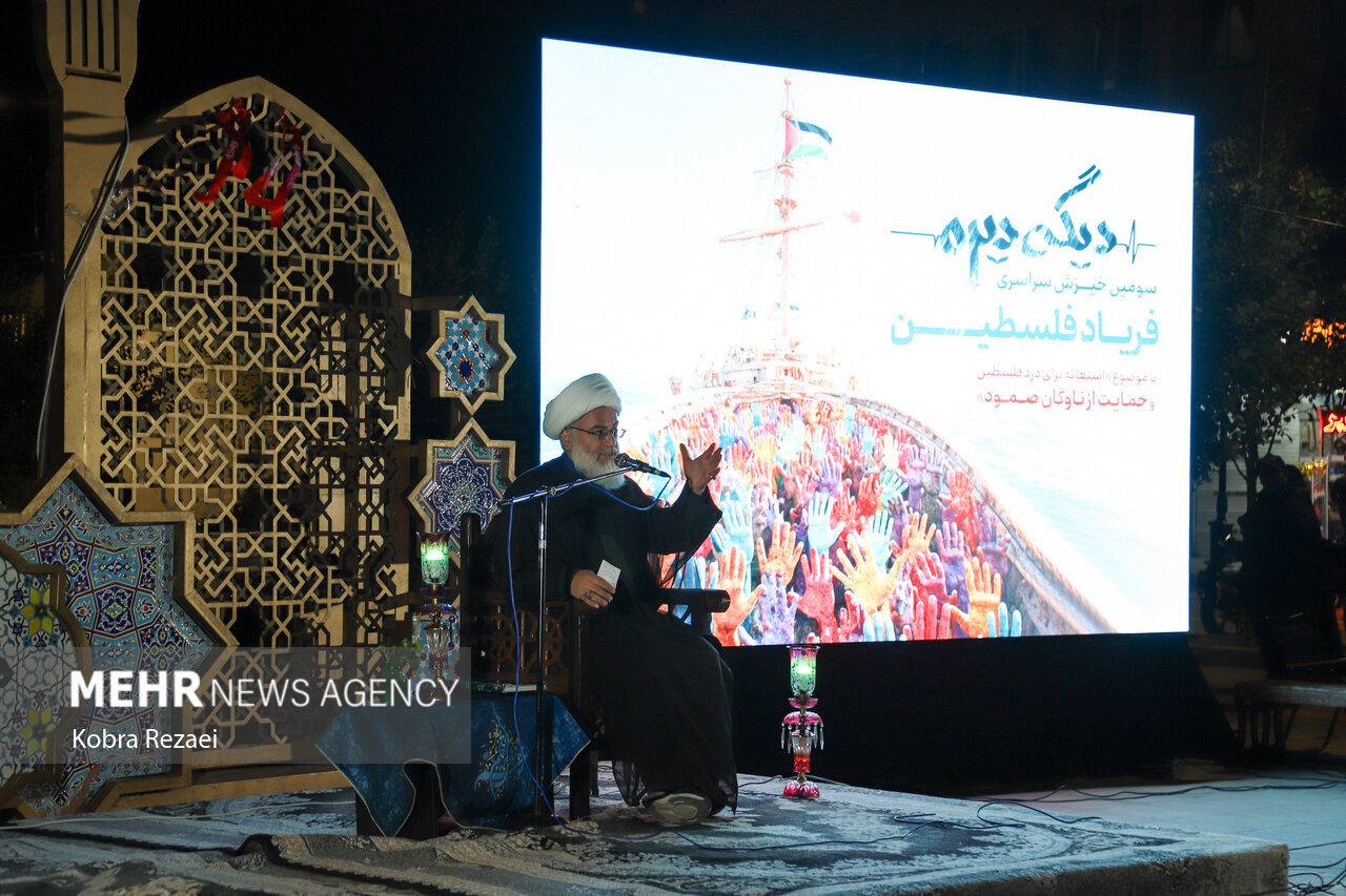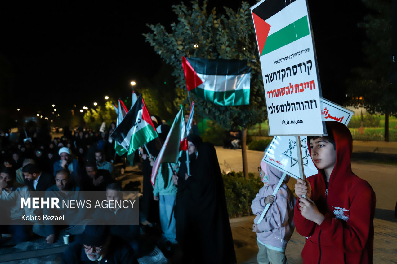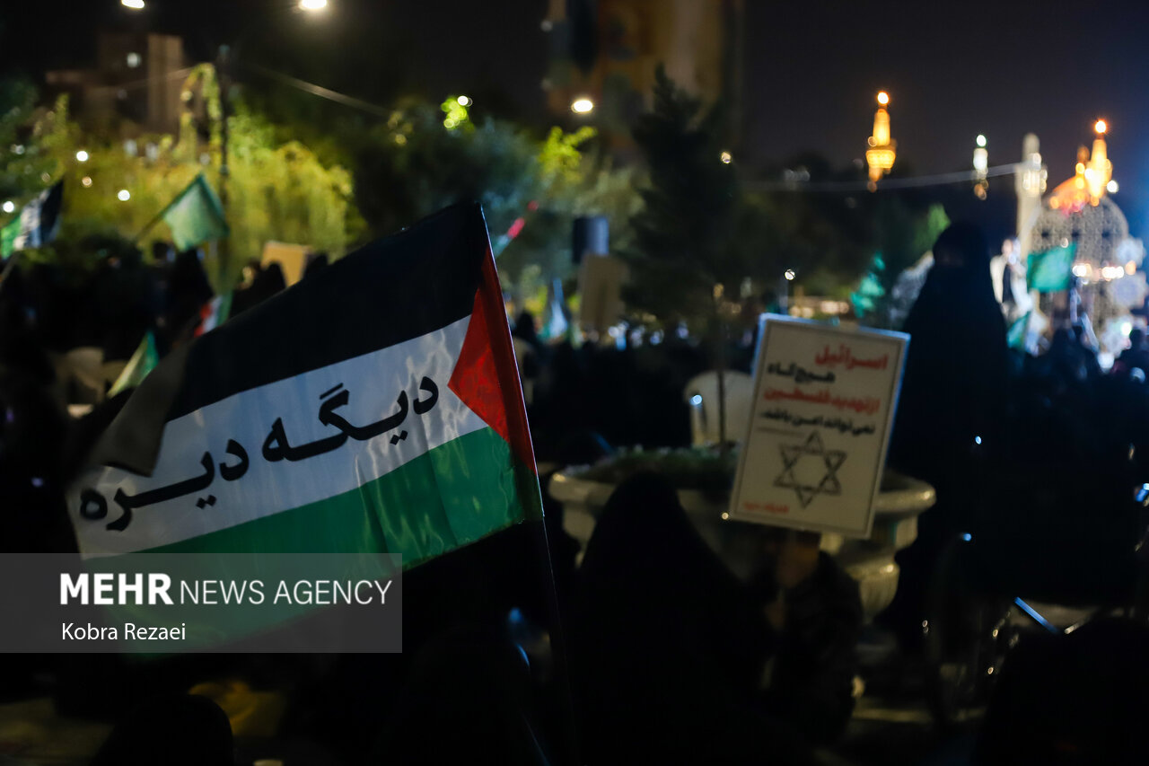 سومین اجتماع سراسری «فریاد فلسطین» با شعار «دیگه دیره» با هدف حمایت از ناوگان بینالمللی دریایی «صمود» و همبستگی با ملت فلسطین، شامگاه جمعه ۱۱ مهر ۱۴۰۴ با حضور اقشار مختلف مردم در رهباغ رضوان مشهد برگزار شد.