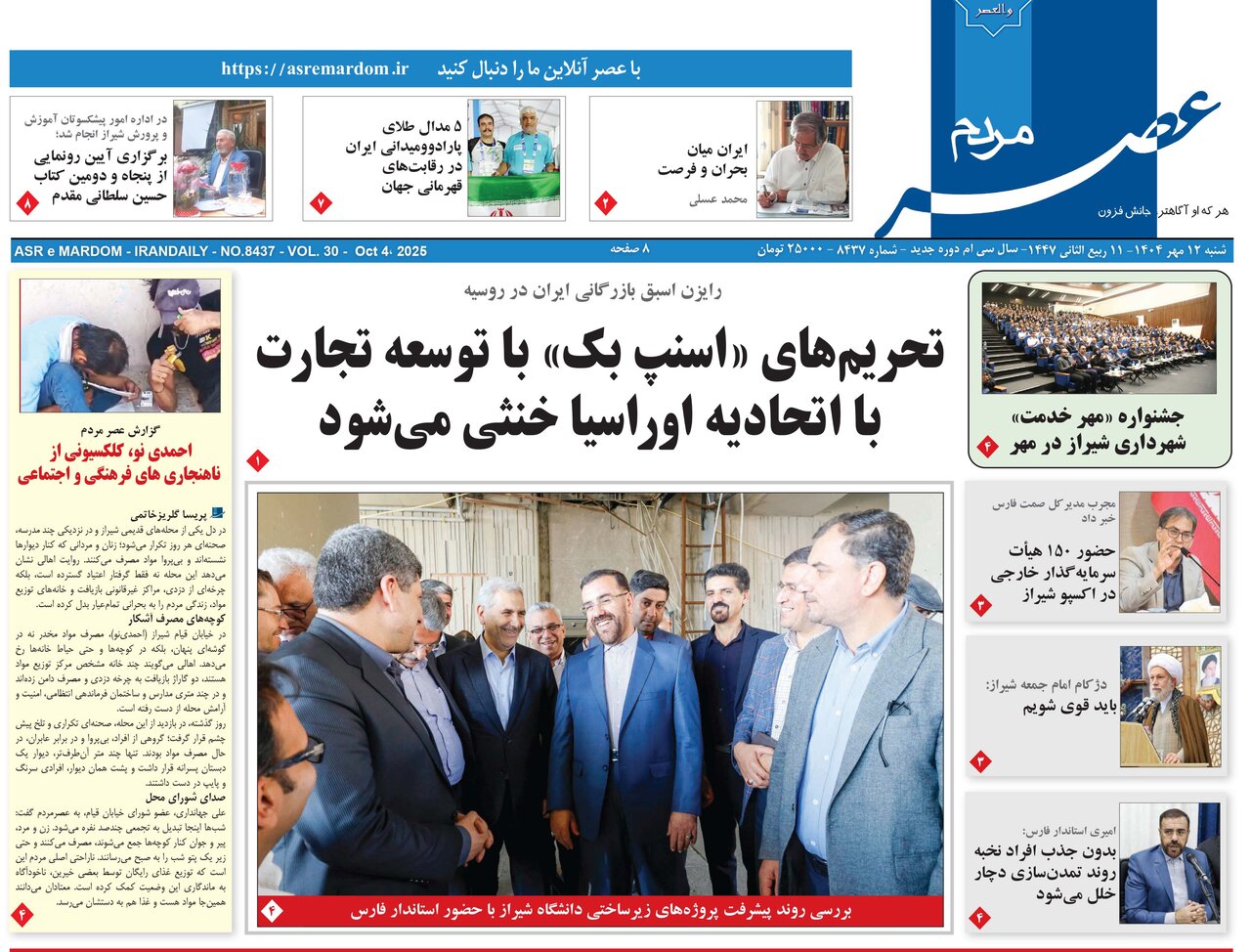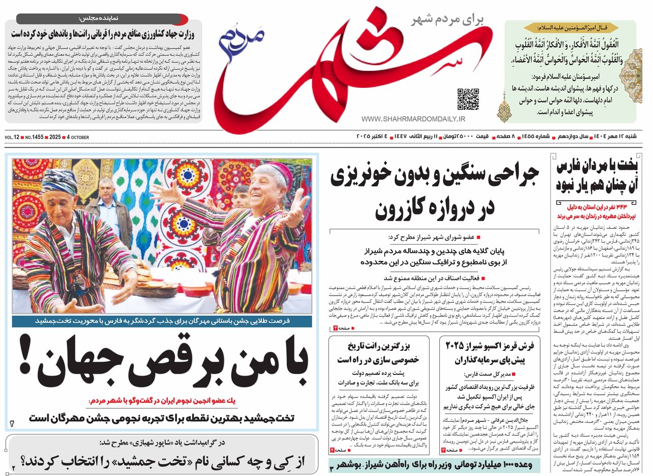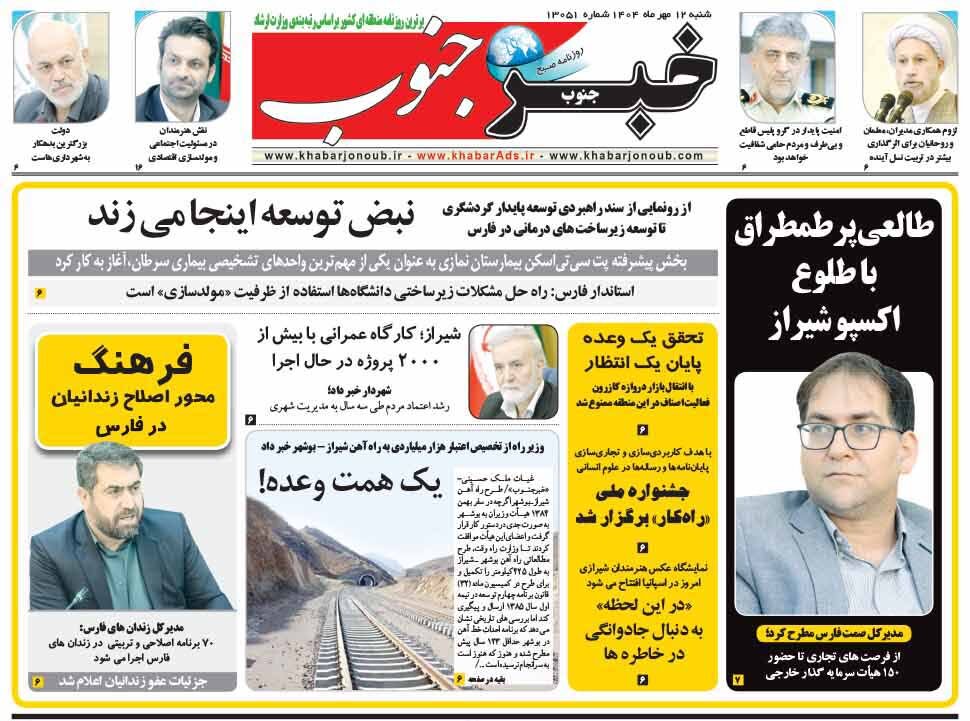 صفحه نخست روزنامه های استان فارس شنبه ۱۲ مهر