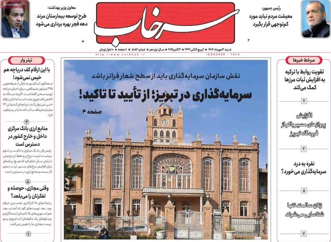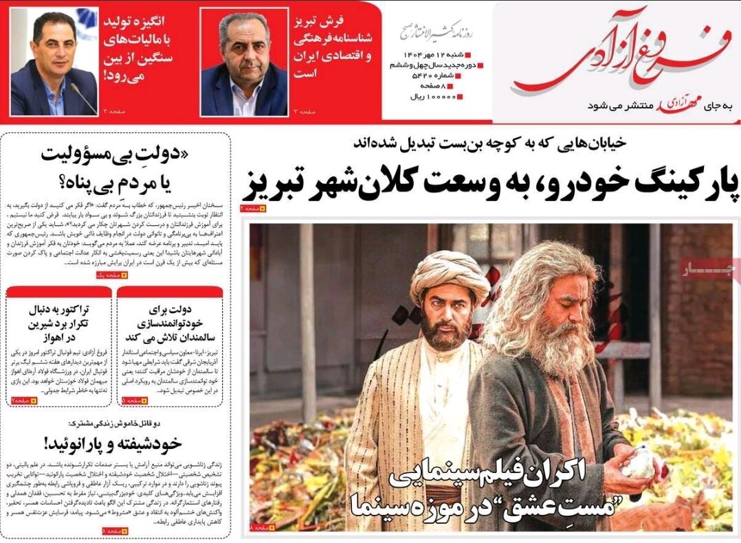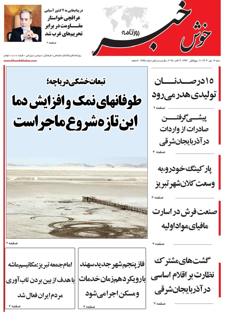صفحه نخست روزنامه‌های آذربایجان شرقی ۱۲ مهر ۱۴۰۴