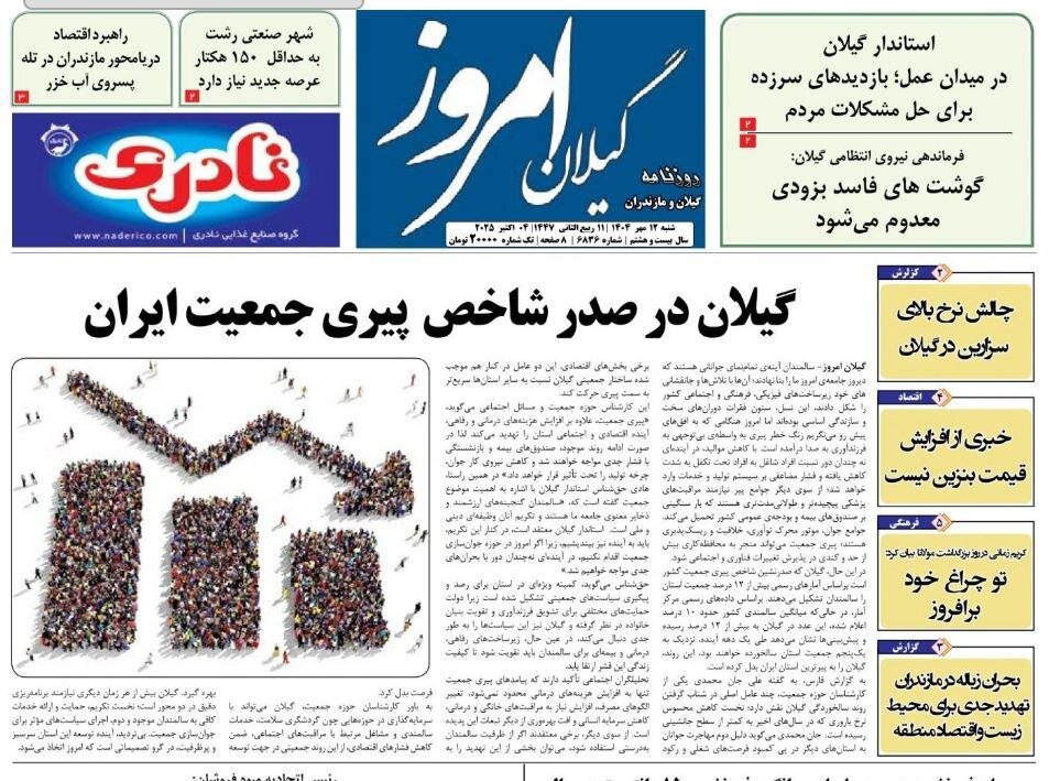 صفحه اول روزنامه های گیلان ۱۲ مهر ۱۴۰۴