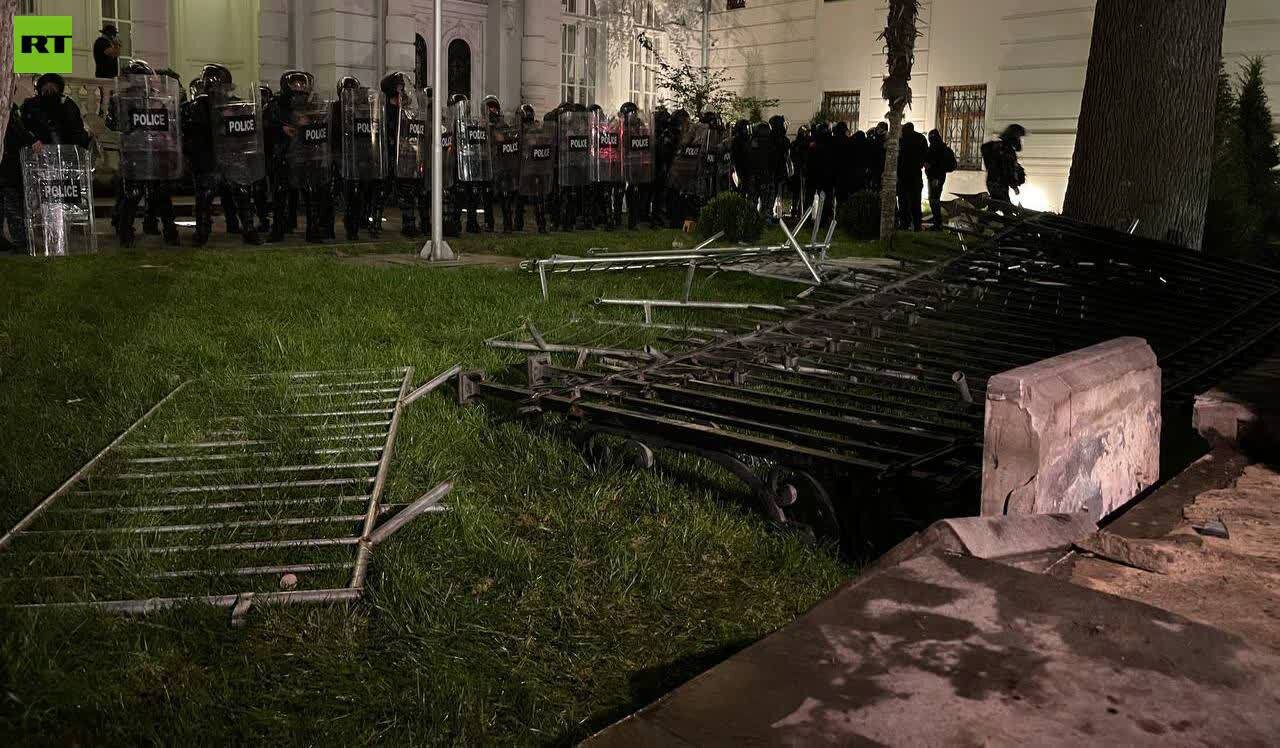 به گزارش اسپوتنیک، یگان های بیشتری از نیروهای ویژه در نزدیکی کاخ ریاست جمهوری گرجستان، جایی که معترضان از موانع آهنی عبور کردند، مستقر شدهاند.