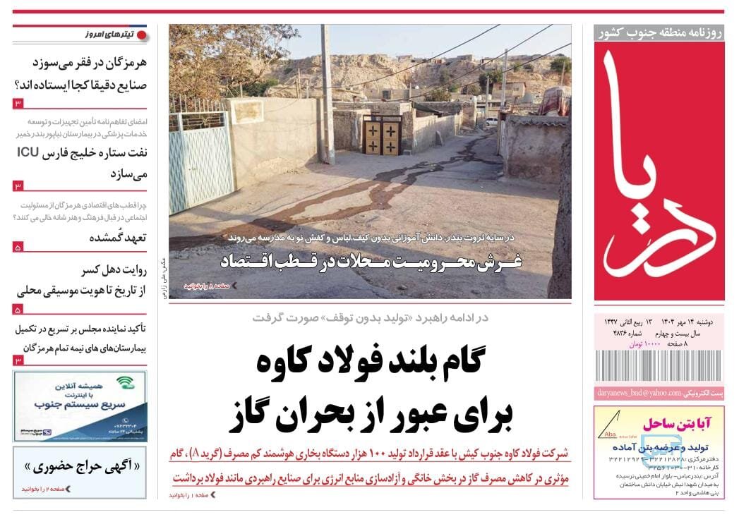 صفحه اول روزنامه‌های هرمزگان دوشنبه ۱۴ مهر