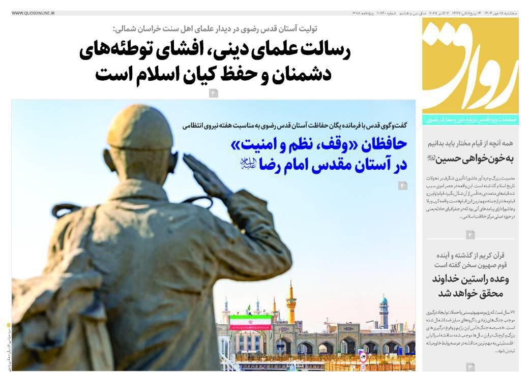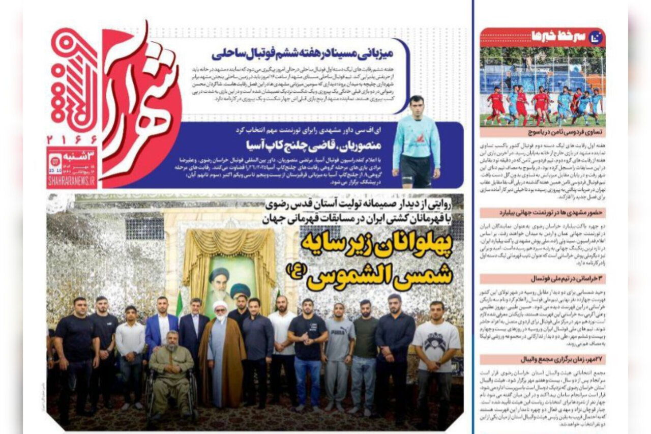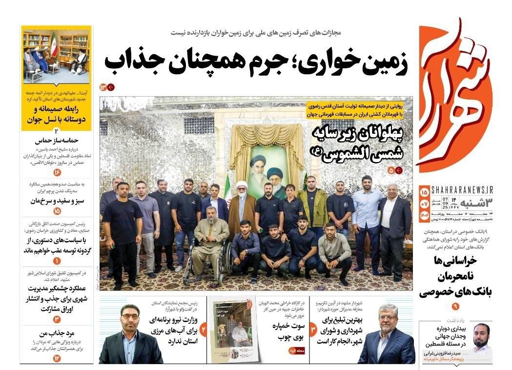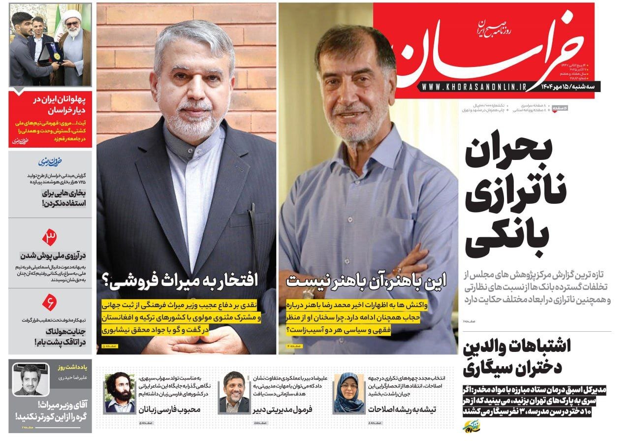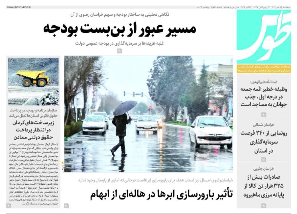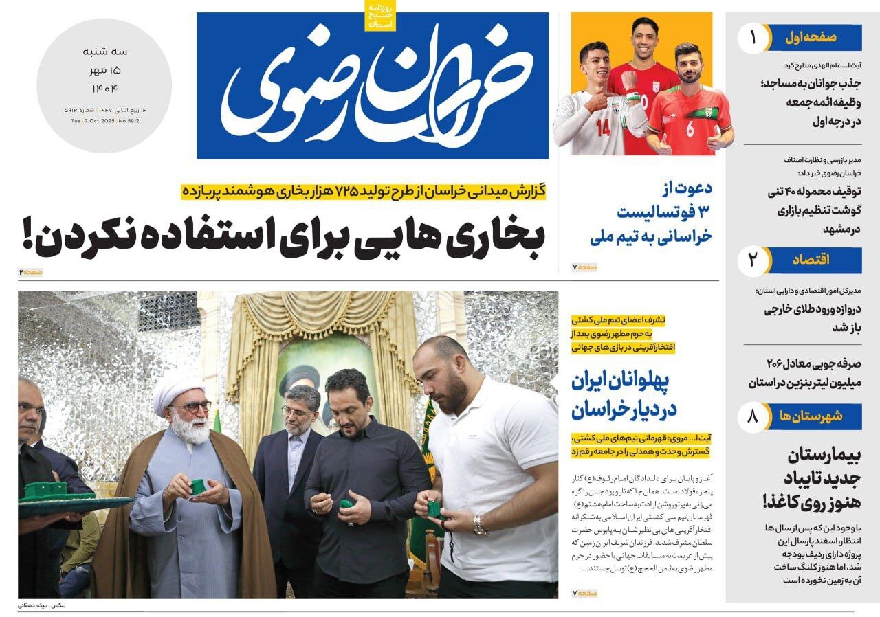 صفحه اول روزنامه های خراسان رضوی ۱۵ مهر ۱۴۰۴
