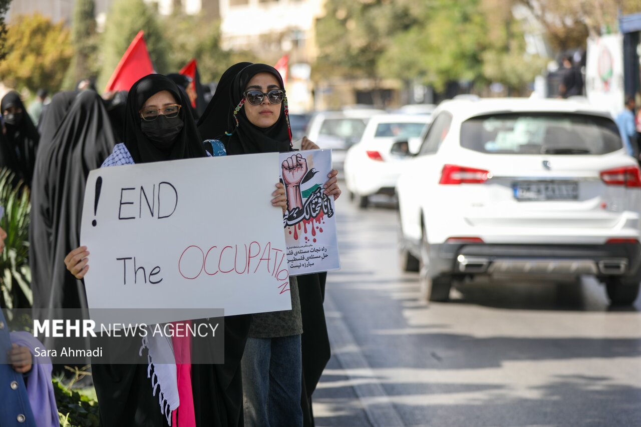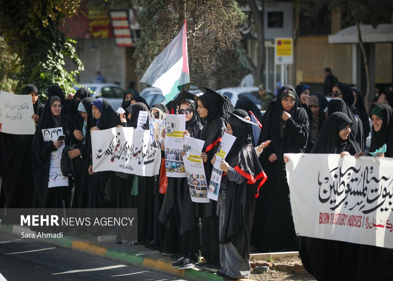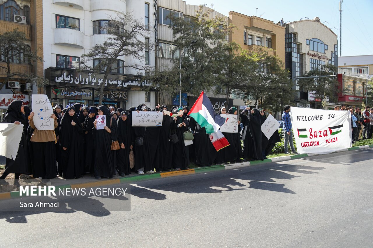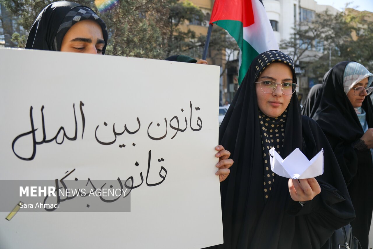 همزمان با دومین سالگرد عملیات «طوفان الاقصی»، جمعی از دانشجویان مشهدی روز چهارشنبه با تجمع در برابر دفتر نمایندگی سازمان ملل در این شهر، حمایت خود را از مردم مظلوم فلسطین اعلام و جنایات رژیم صهیونیستی را محکوم کردند. در این مراسم «ناصر ابوشریف»، نماینده جنبش جهاد اسلامی فلسطین در ایران نیز سخنرانی کرد.